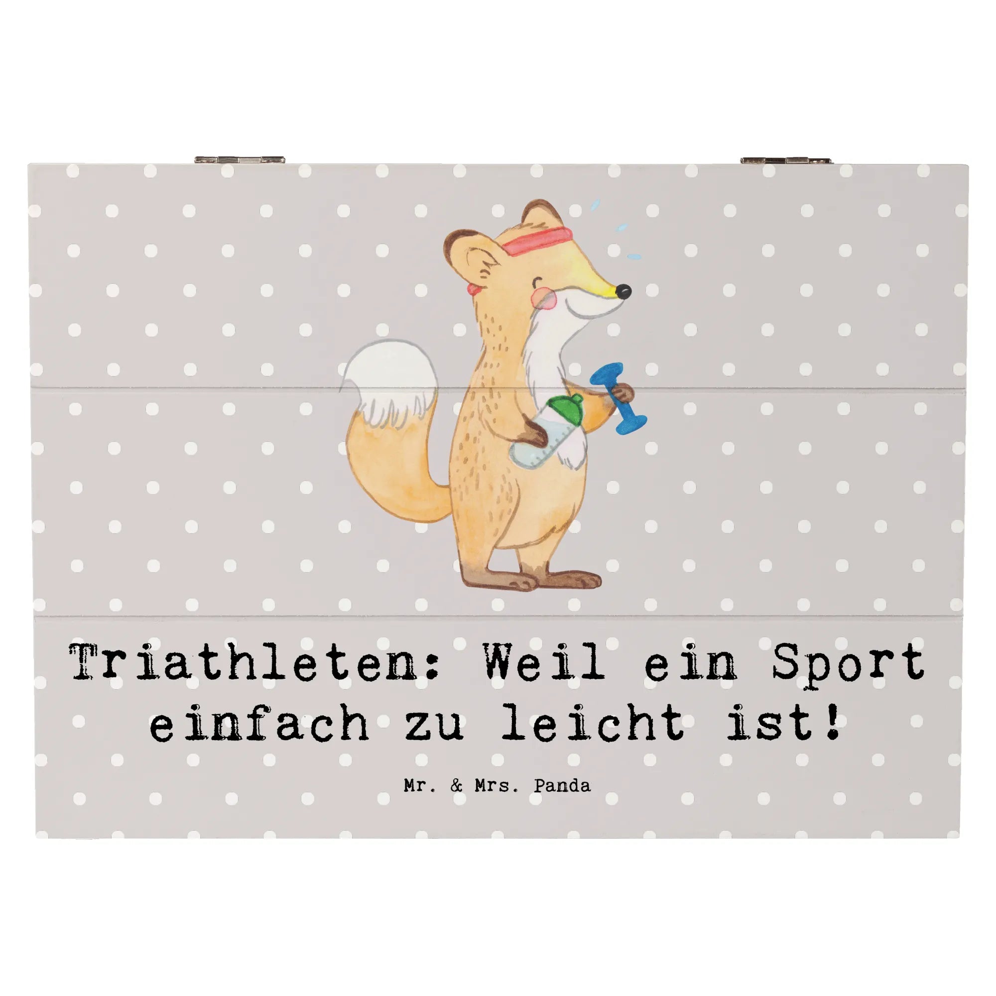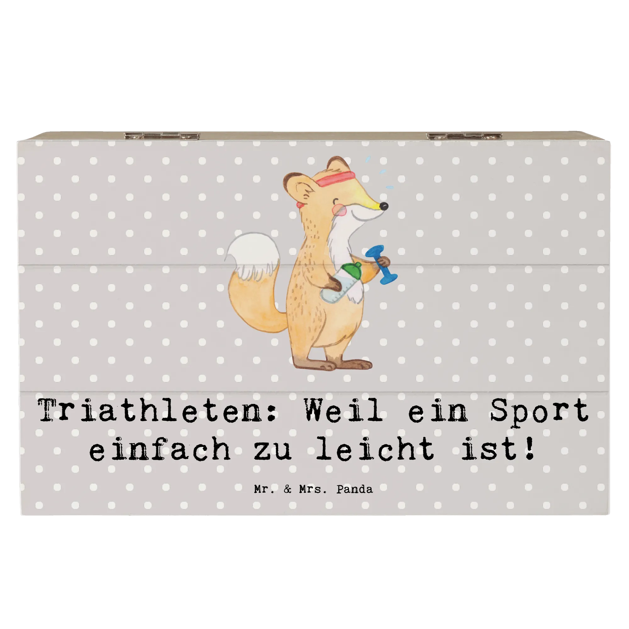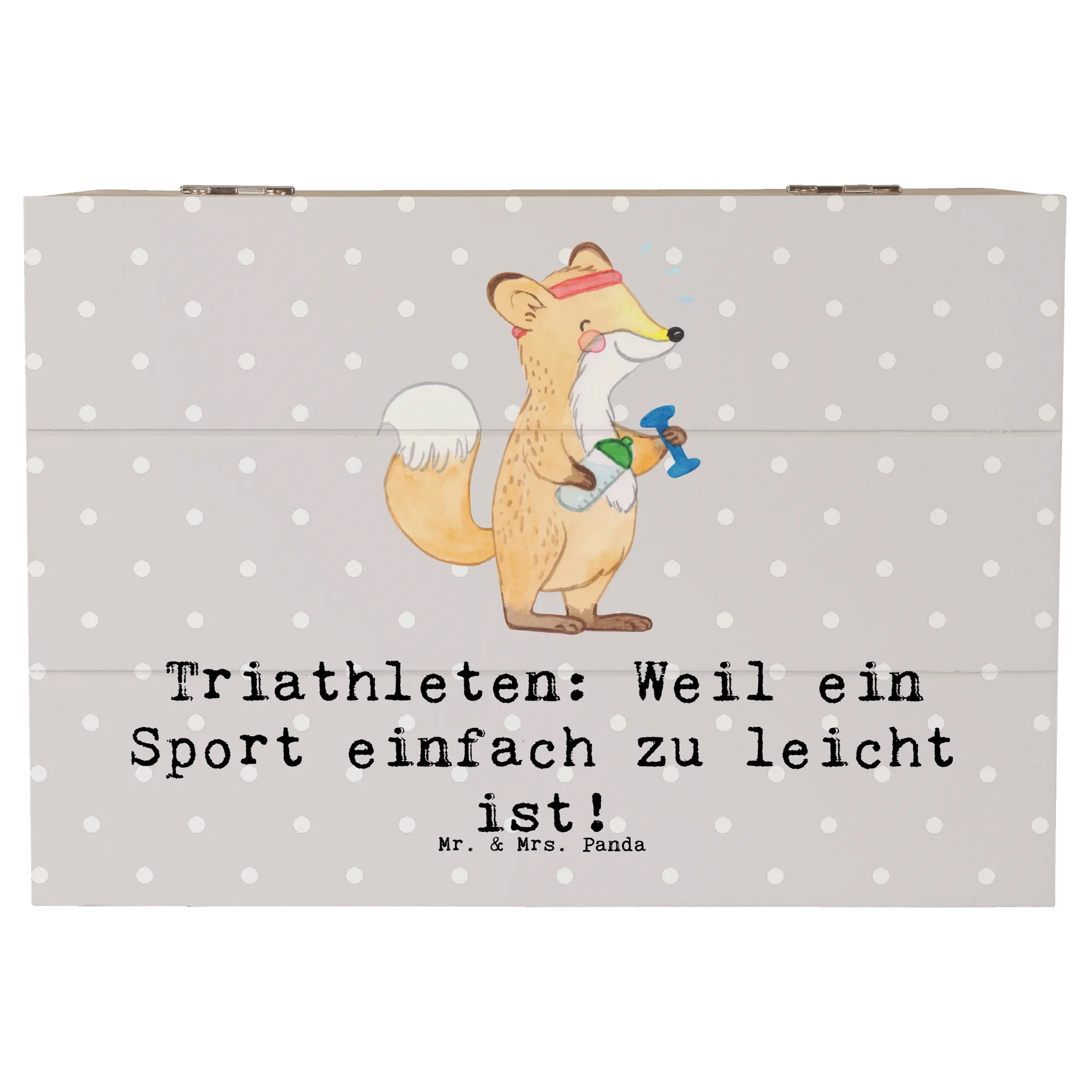 Wooden chest Triathleten: Weil ein Sport einfach zu leicht ist! - 22 x 15 cm - Grey Pastel