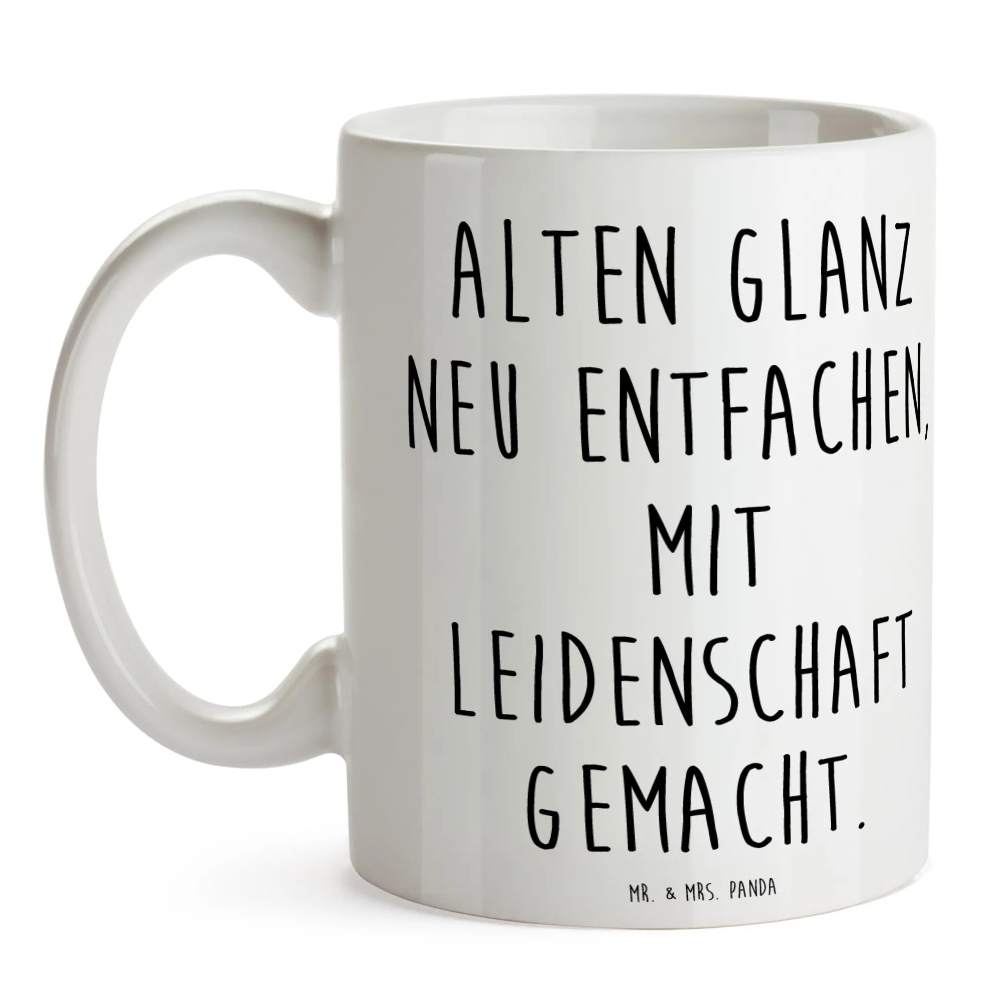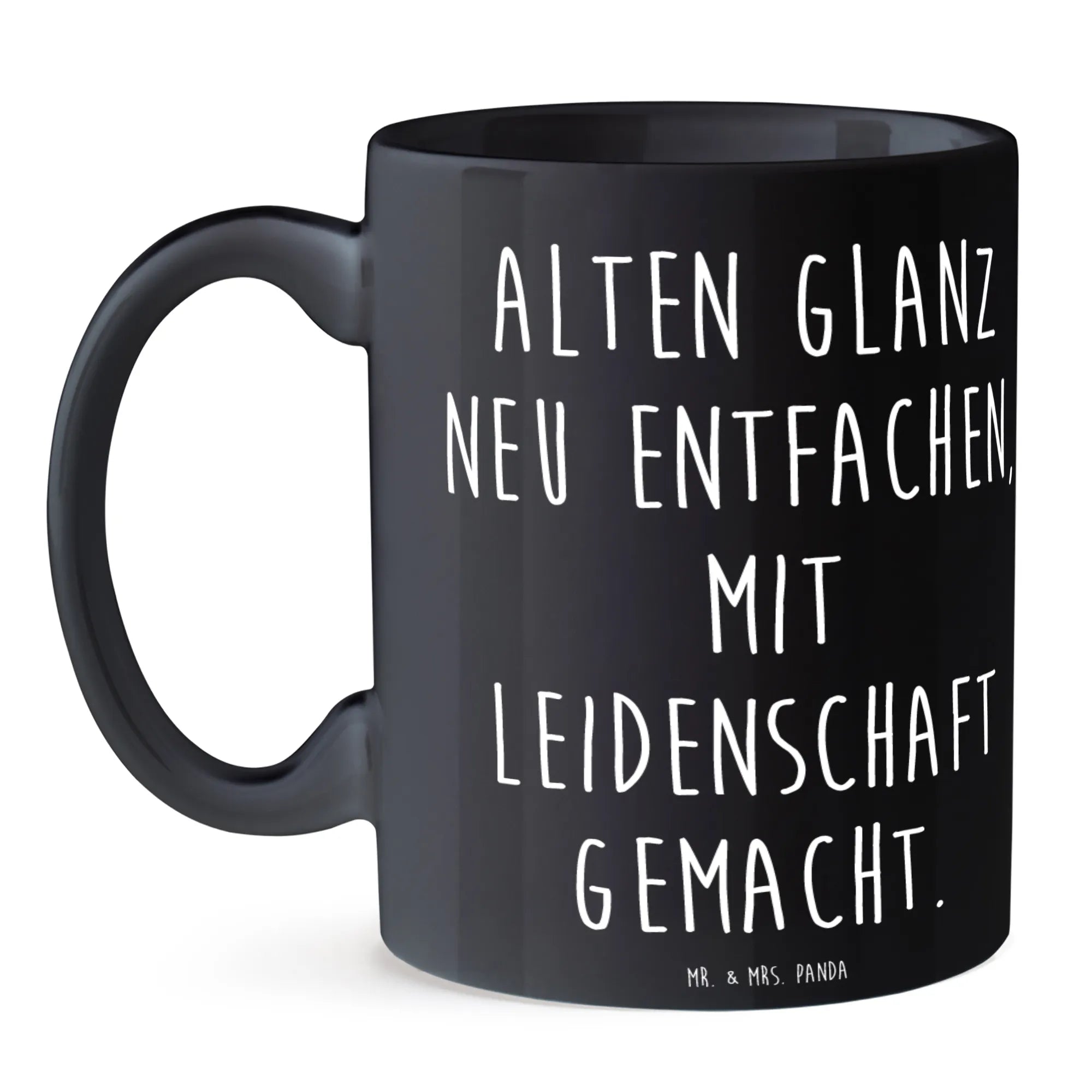 Mug Saying Alten Glanz neu entfachen, mit Leidenschaft gemacht. - Black