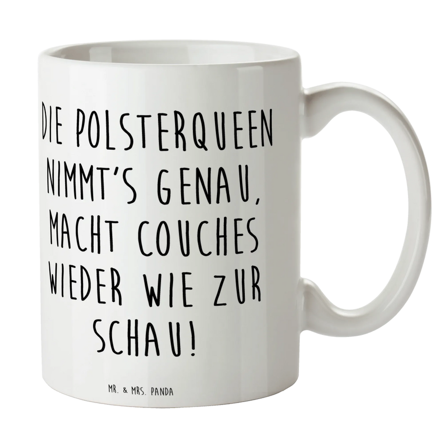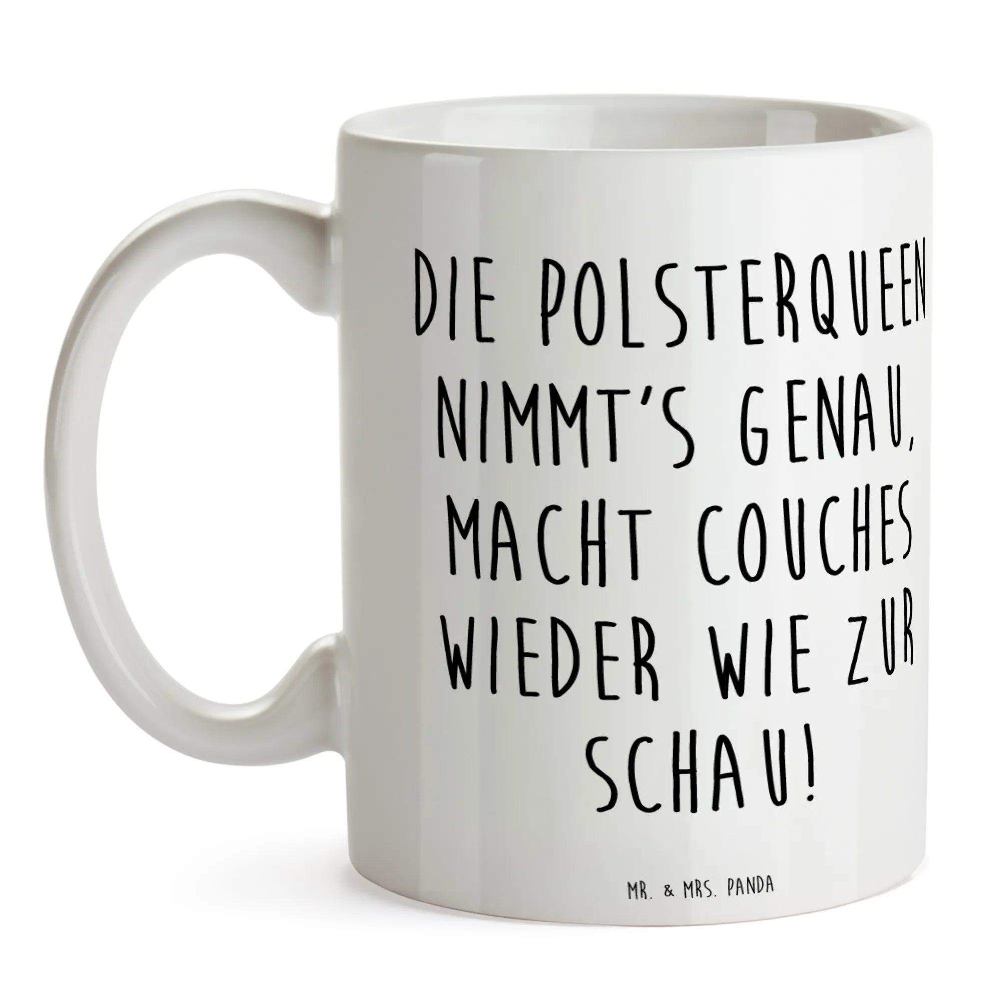 Mug Saying Die Polsterqueen nimmt's genau, macht couches wieder wie zur Schau! - White
