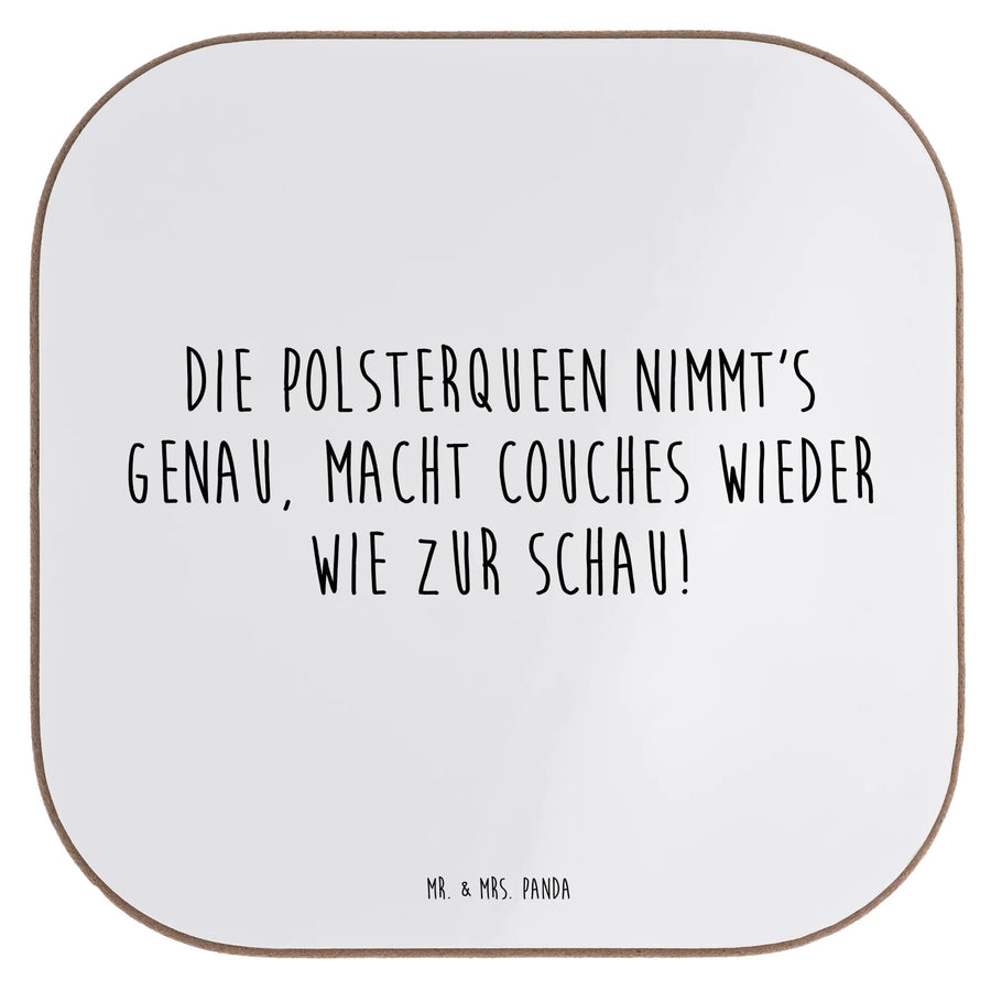 Square coaster Saying Die Polsterqueen nimmt's genau, macht couches wieder wie zur Schau! - hardboard - White