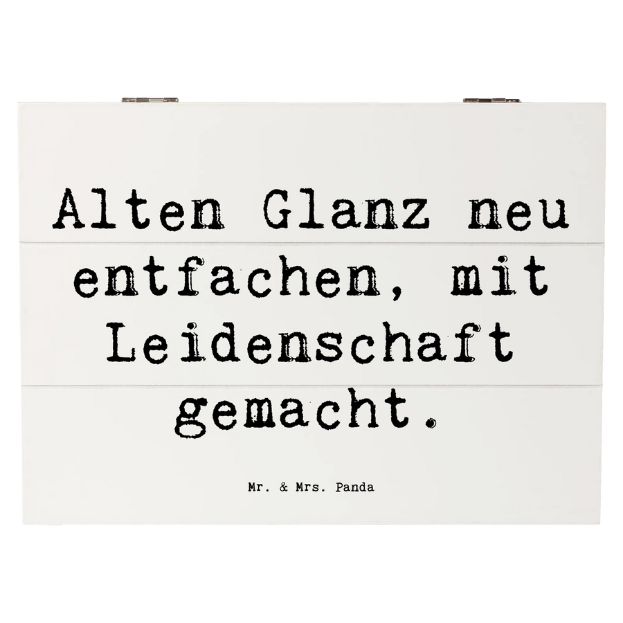 Wooden chest Saying Alten Glanz neu entfachen, mit Leidenschaft gemacht. - 25 x 18 cm - White