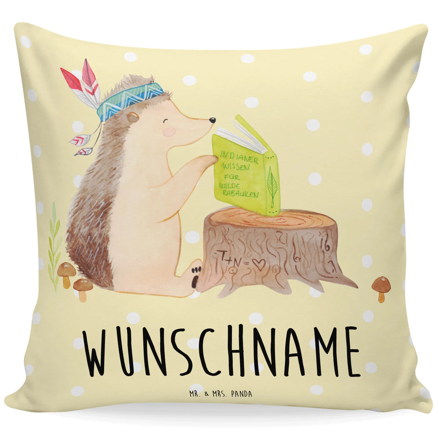 Personalised cushion Hedgehog feather headdress - Yellow Pastel