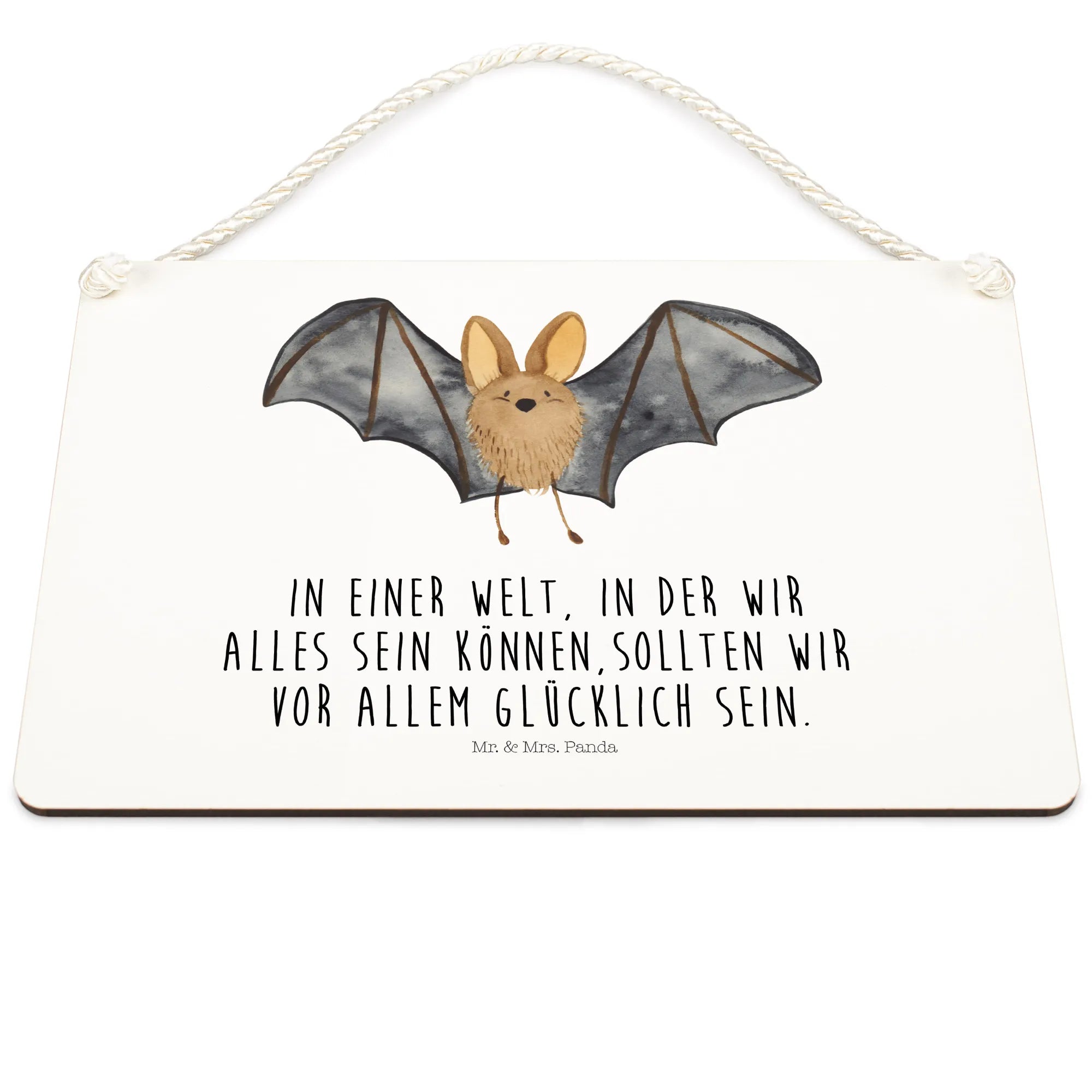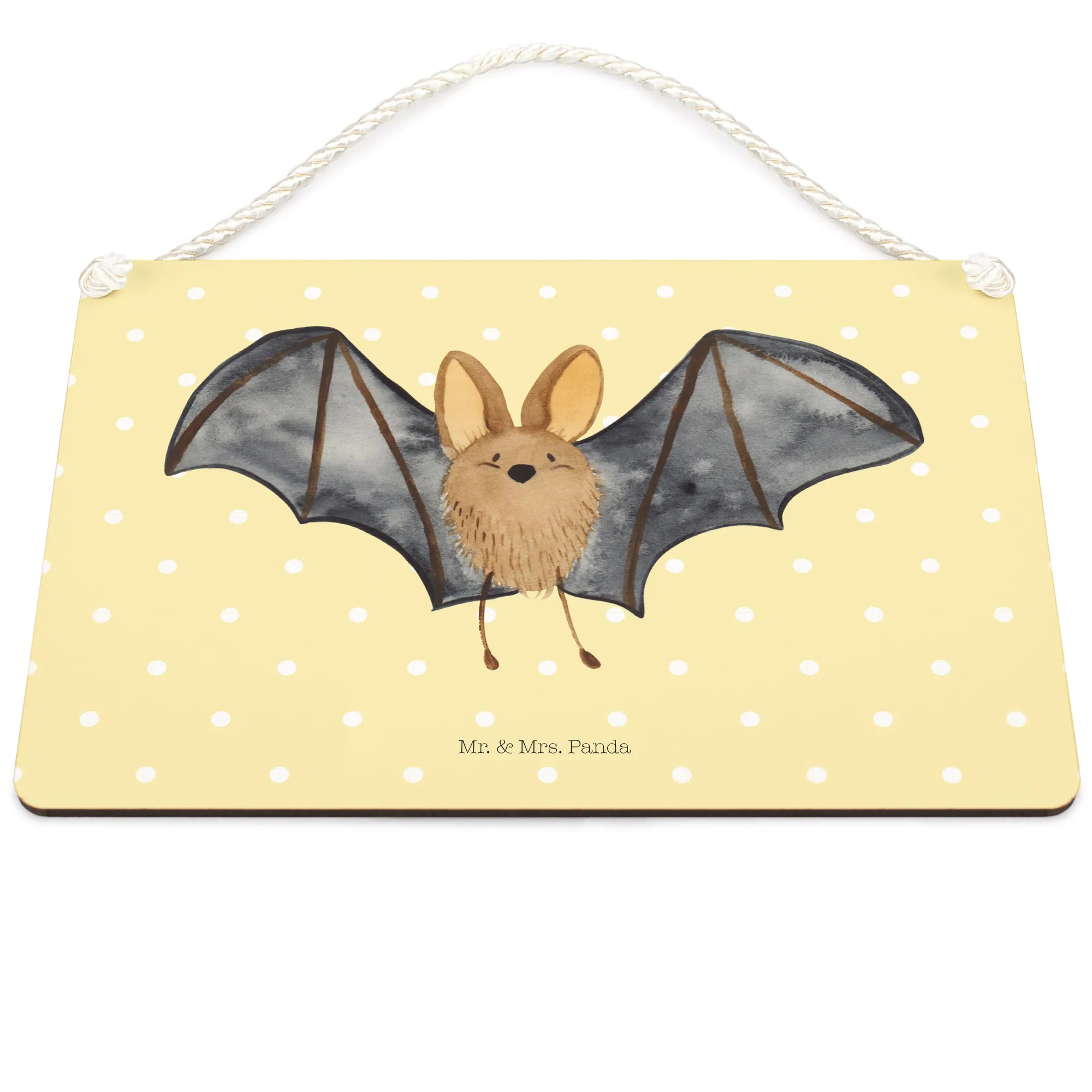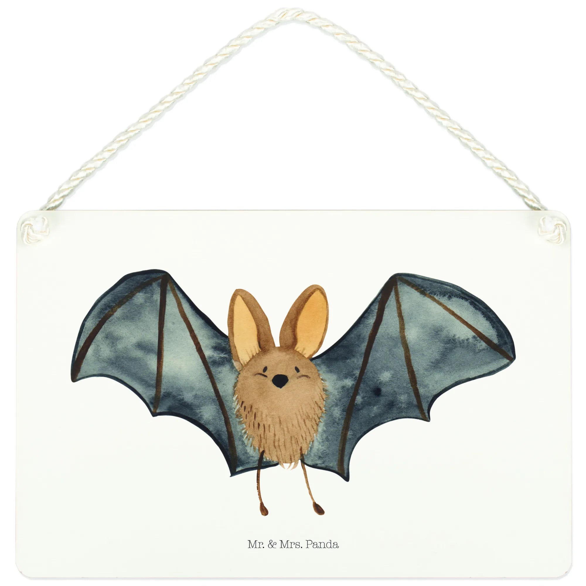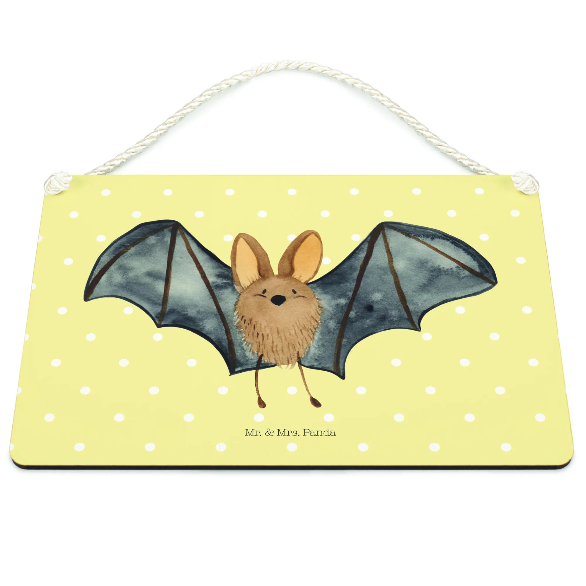 Introducing the delightful Decorative Sign featuring a Bat flapping its wings from our charming Small World collection by Mr. & Mrs. Panda! This gorgeous piece of wall decor is not just an ordinary sign; it's a vibrant reminder of the joy and magic of life. With its hand-drawn design bringing a cute bat to life, this sign brings character to any room and is perfect for hanging on a door, wall or even as a unique gift for that special someone who loves cute animal motifs.