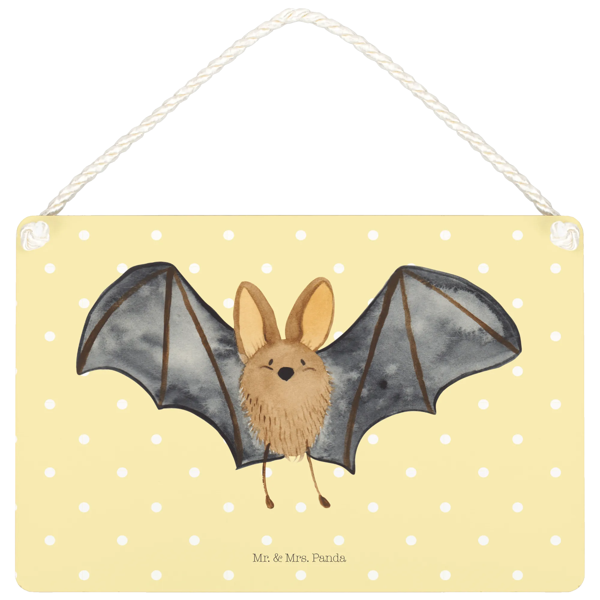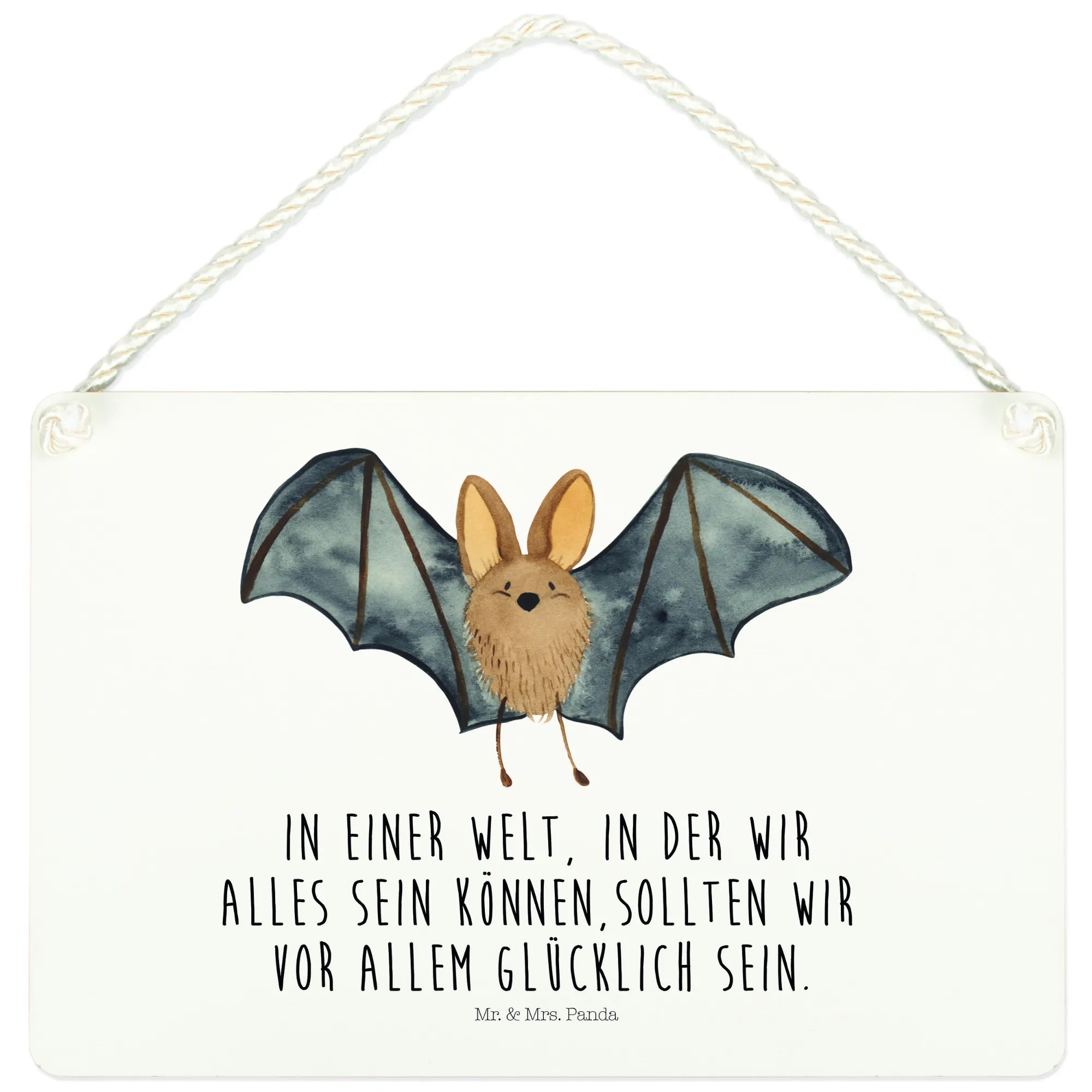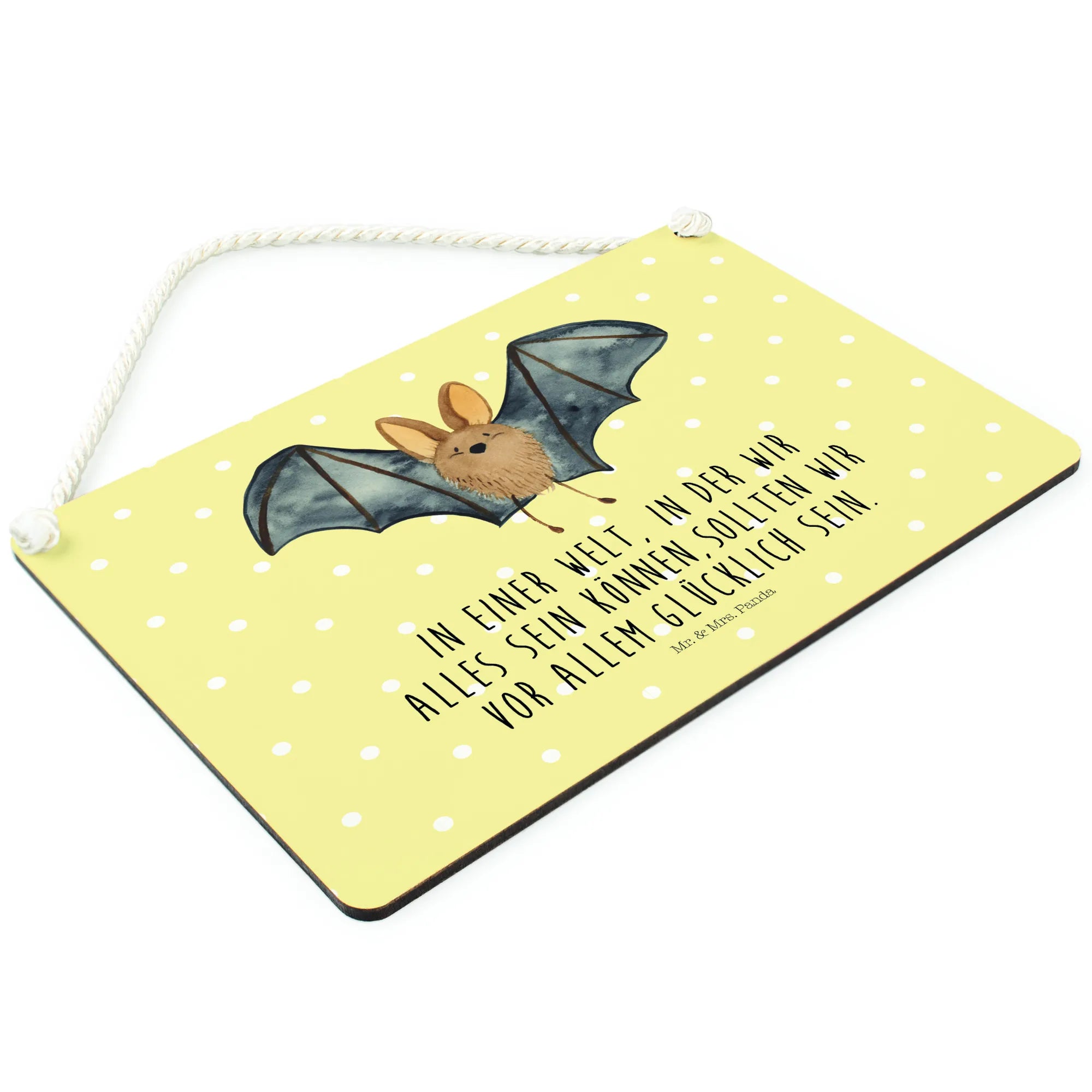 Introducing the delightful Decorative Sign featuring a Bat flapping its wings from our charming Small World collection by Mr. & Mrs. Panda! This gorgeous piece of wall decor is not just an ordinary sign; it's a vibrant reminder of the joy and magic of life. With its hand-drawn design bringing a cute bat to life, this sign brings character to any room and is perfect for hanging on a door, wall or even as a unique gift for that special someone who loves cute animal motifs.