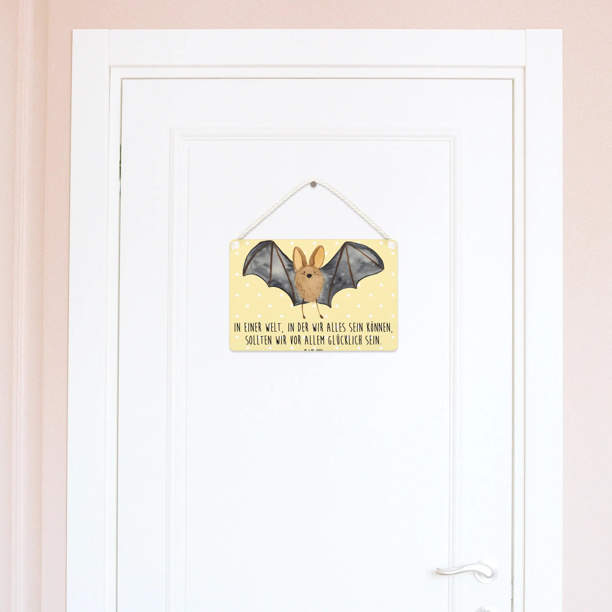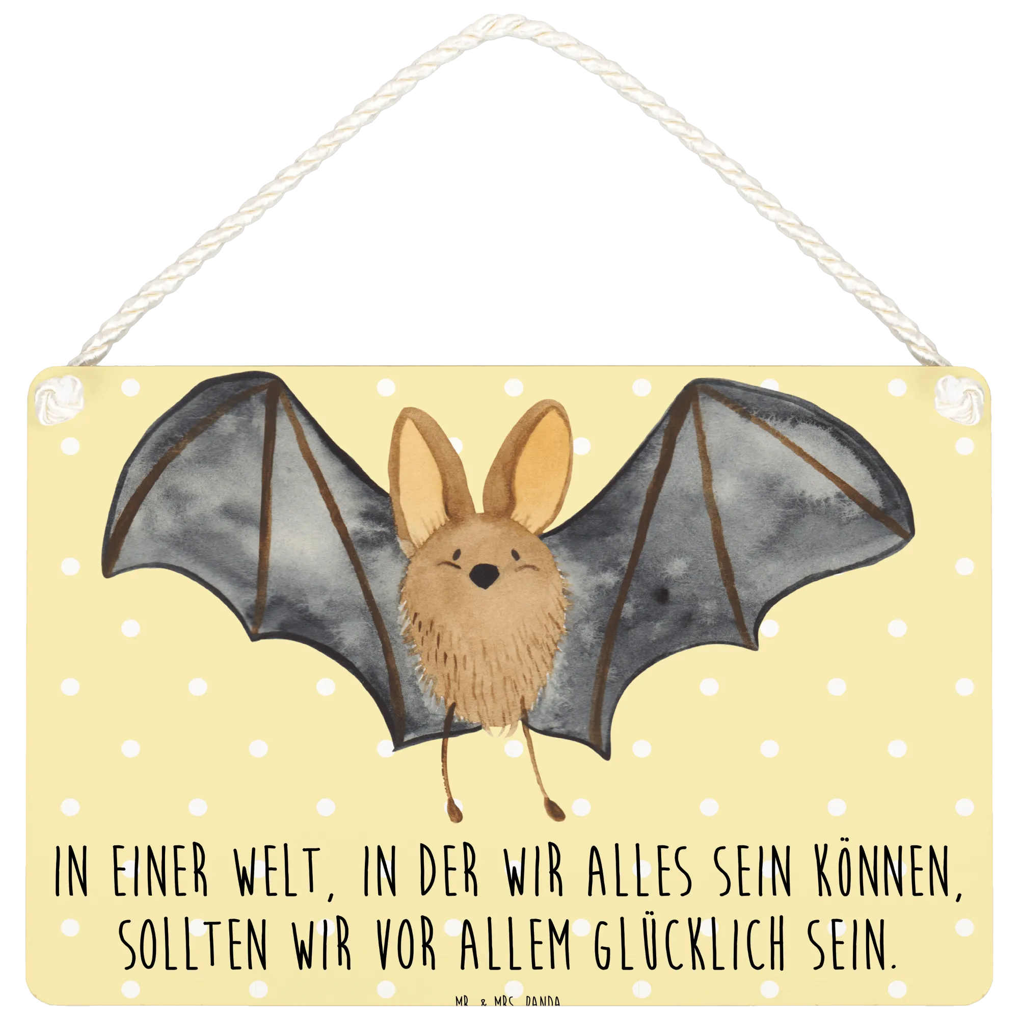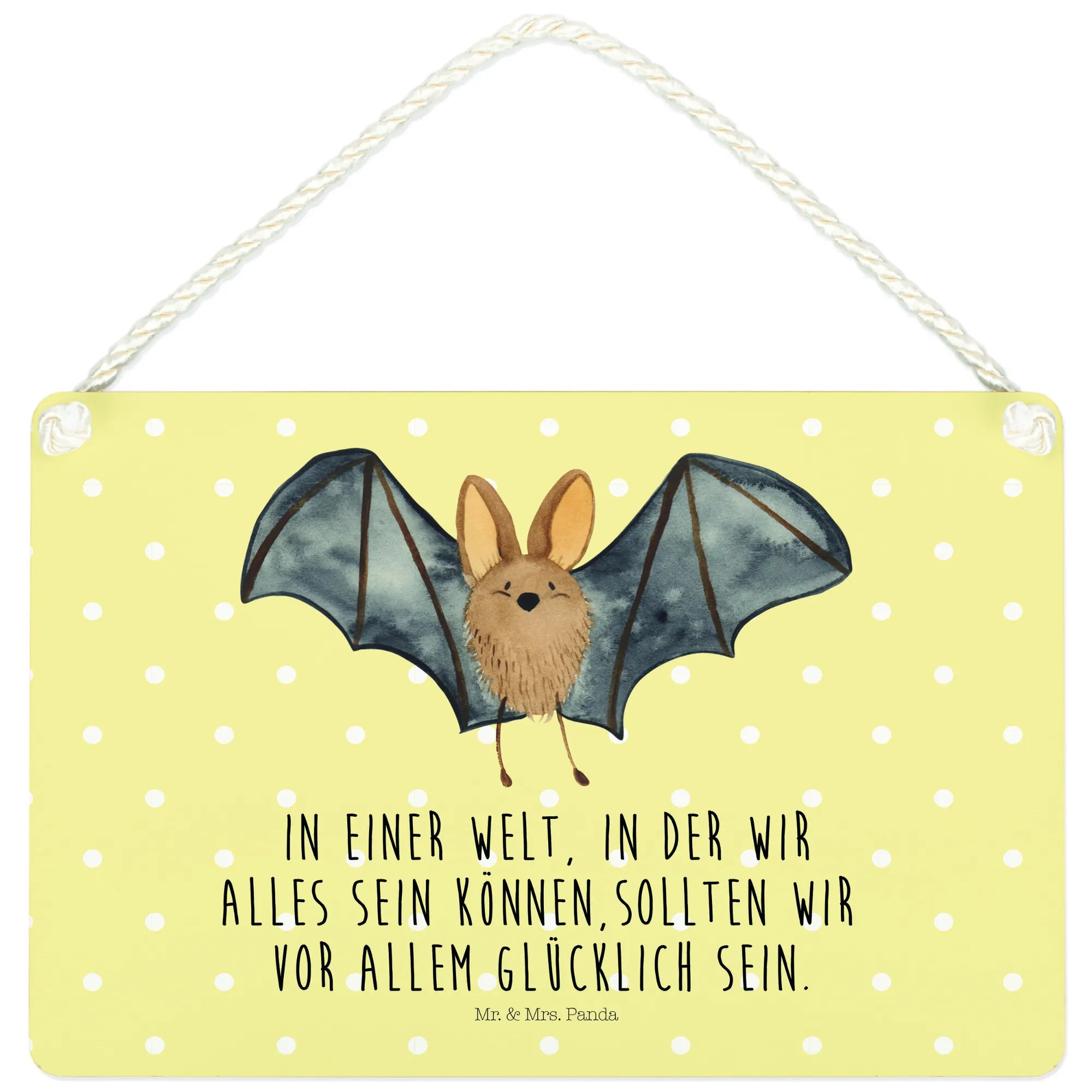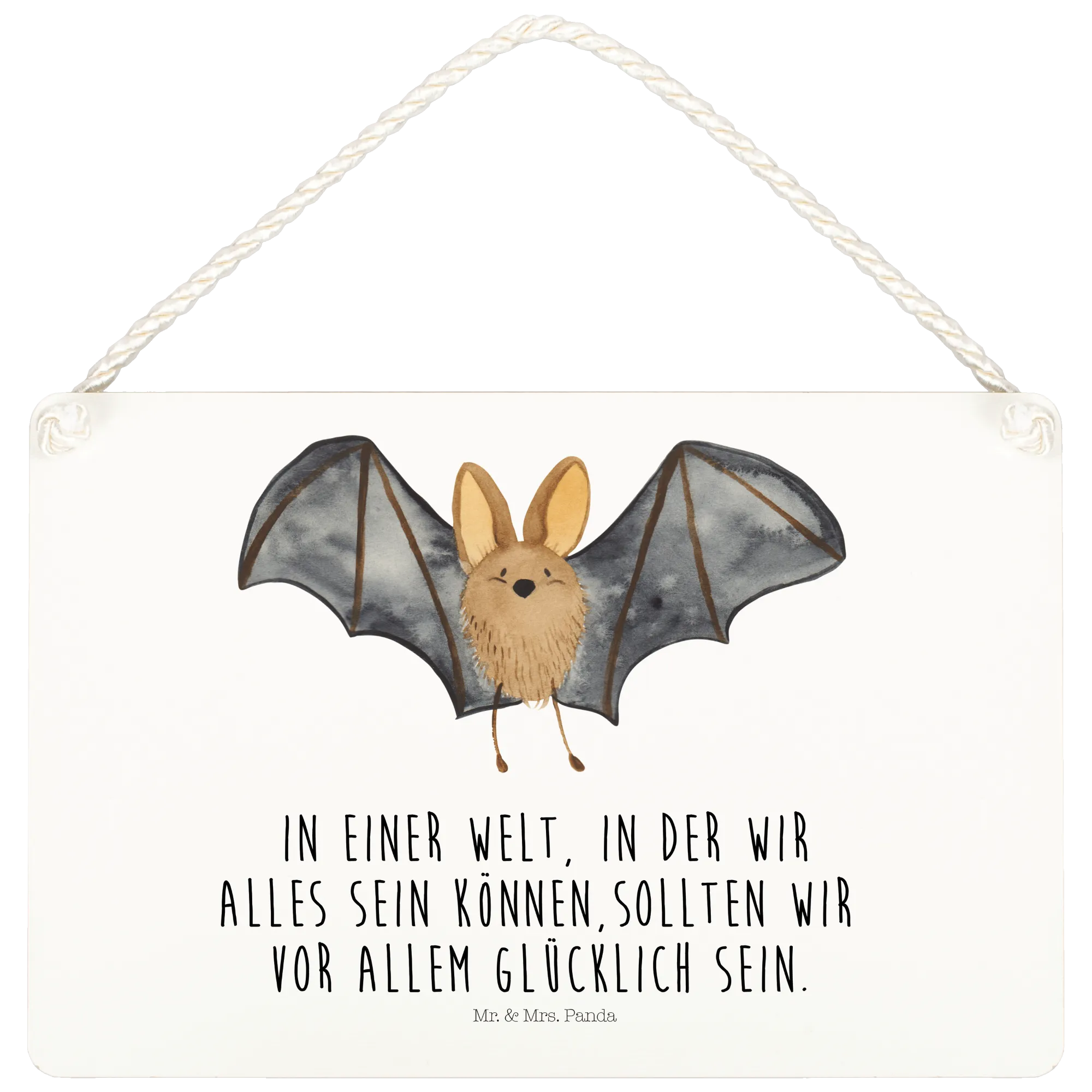 Introducing the delightful Decorative Sign featuring a Bat flapping its wings from our charming Small World collection by Mr. & Mrs. Panda! This gorgeous piece of wall decor is not just an ordinary sign; it's a vibrant reminder of the joy and magic of life. With its hand-drawn design bringing a cute bat to life, this sign brings character to any room and is perfect for hanging on a door, wall or even as a unique gift for that special someone who loves cute animal motifs.