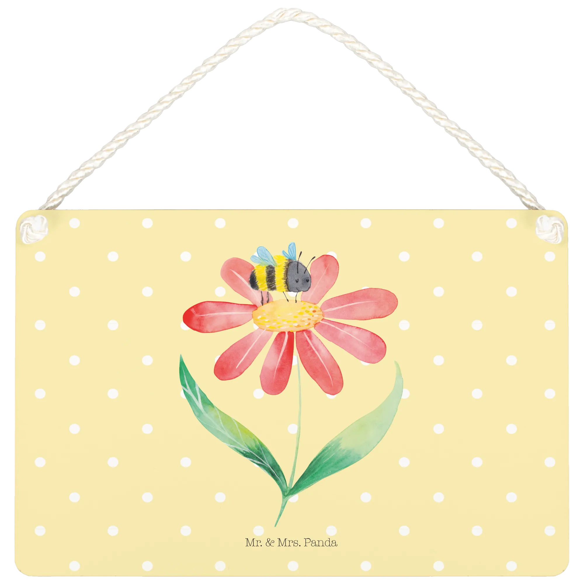Ein wunderschönes und edles Deko Schild von Mr. & Mrs. Panda, das dein Zuhause mit Freude und Farben bereichern wird. Besonders die hübsche Hummel auf einer Blüte wird dich begeistern! Dieses Deko Schild ist nicht nur eine herrliche Wanddeko, sondern auch ein Blickfang an jeder Tür.