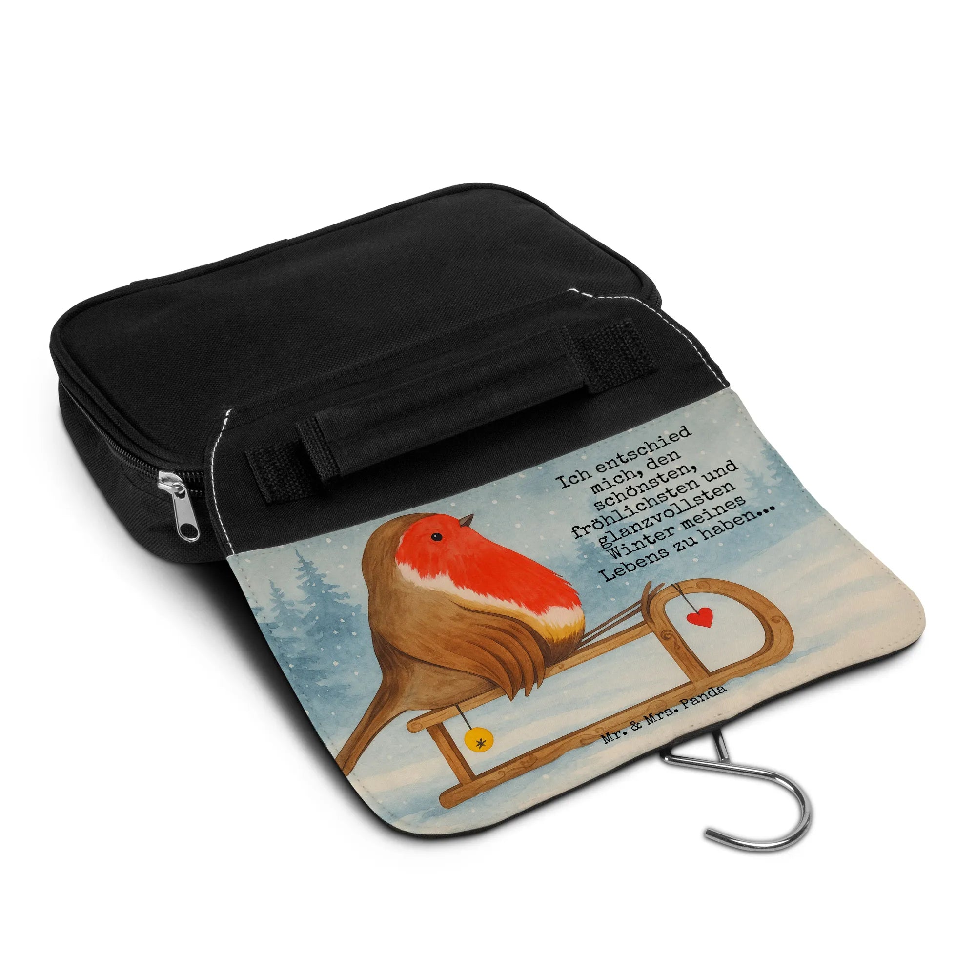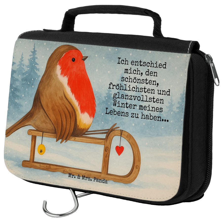 Kulturbeutel Rotkehlchen Schlitten Design - mit Spruch