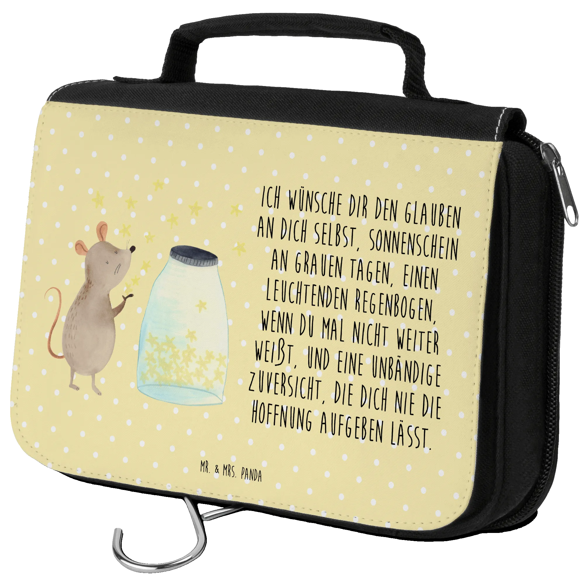 • Travel in style with this cute wash bag by Mr. & Mrs. Panda, featuring fun quotes and a charming design!