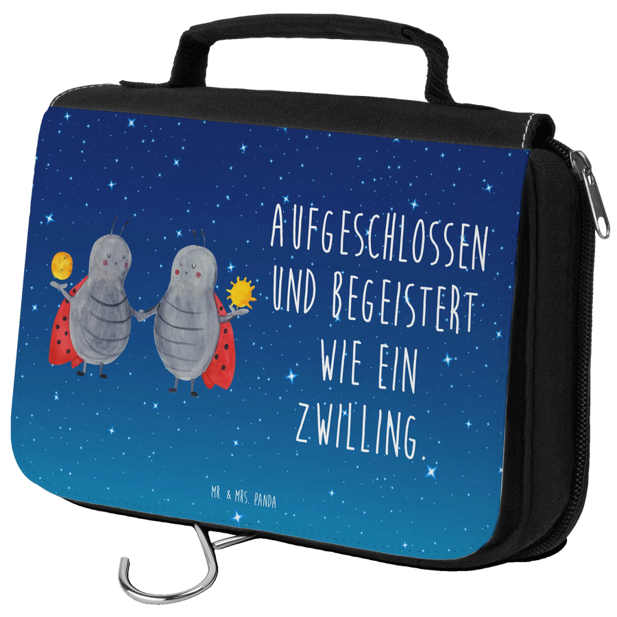 Introducing the Mr. & Mrs. Panda Wash Bag featuring the delightful star sign Gemini motif! This beautiful wash bag, adorned with the charming motif of two ladybirds (because twins are lucky!), is not just a sophisticated piece to keep your toiletries organized but also the perfect gift for those born under the Gemini zodiac sign.