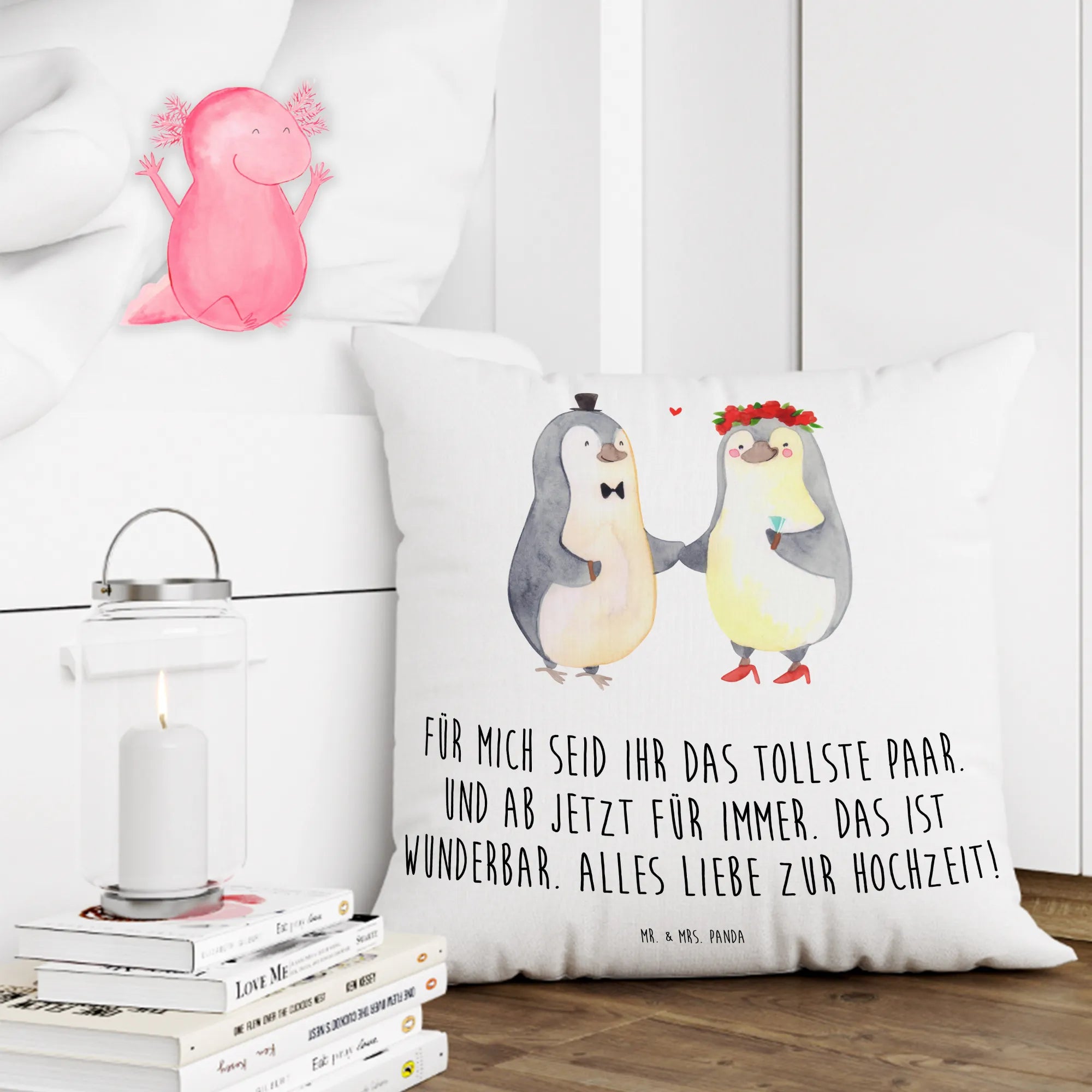 Introducing the delightful Wedding Couple Penguin Cushion from Mr. & Mrs. Panda—a charming addition to any newlywed couple's home! This adorable cushion features two loving penguins holding hands, perfectly capturing the sweetness of a wedding day. With soft watercolor tones and intricate details, it becomes a delightful focal point in a bedroom or on a cozy couch, making it an irresistible gift idea for weddings, anniversaries, or even engagements!