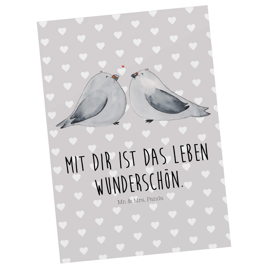Postcard Turtledoves in love - with saying - Pastel Gray