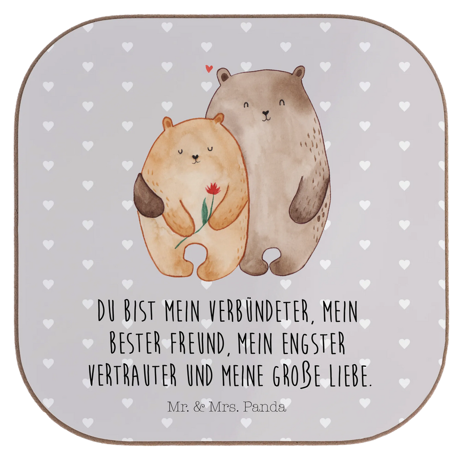 Square coaster Bears in love - with a saying - Grey Pastel