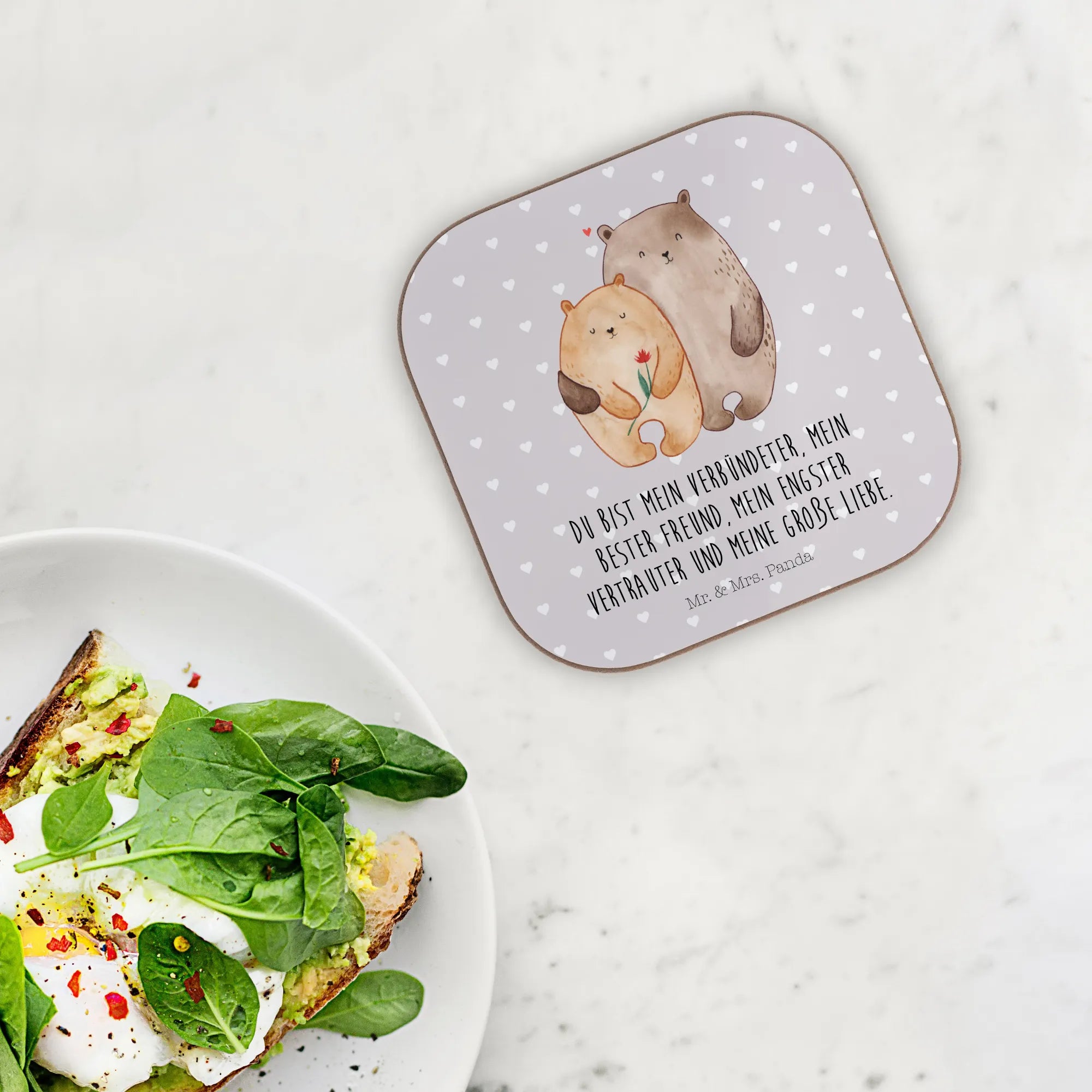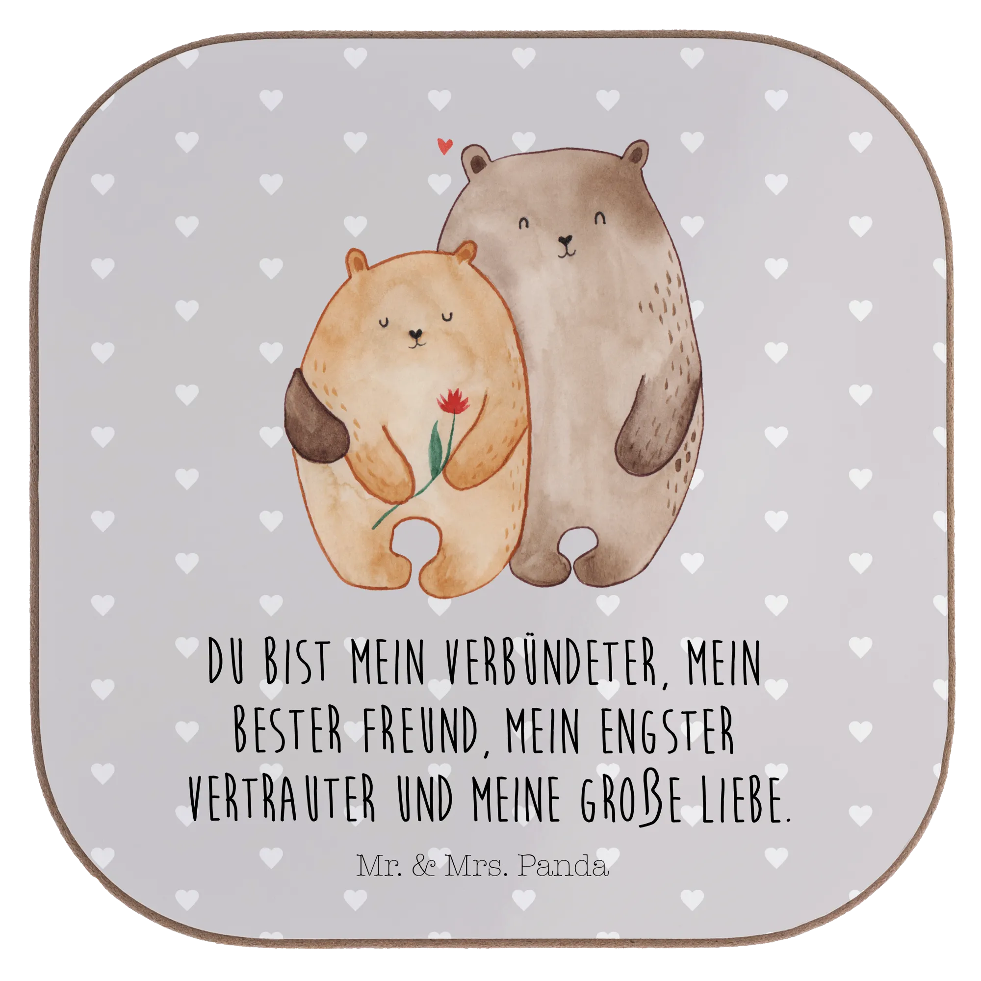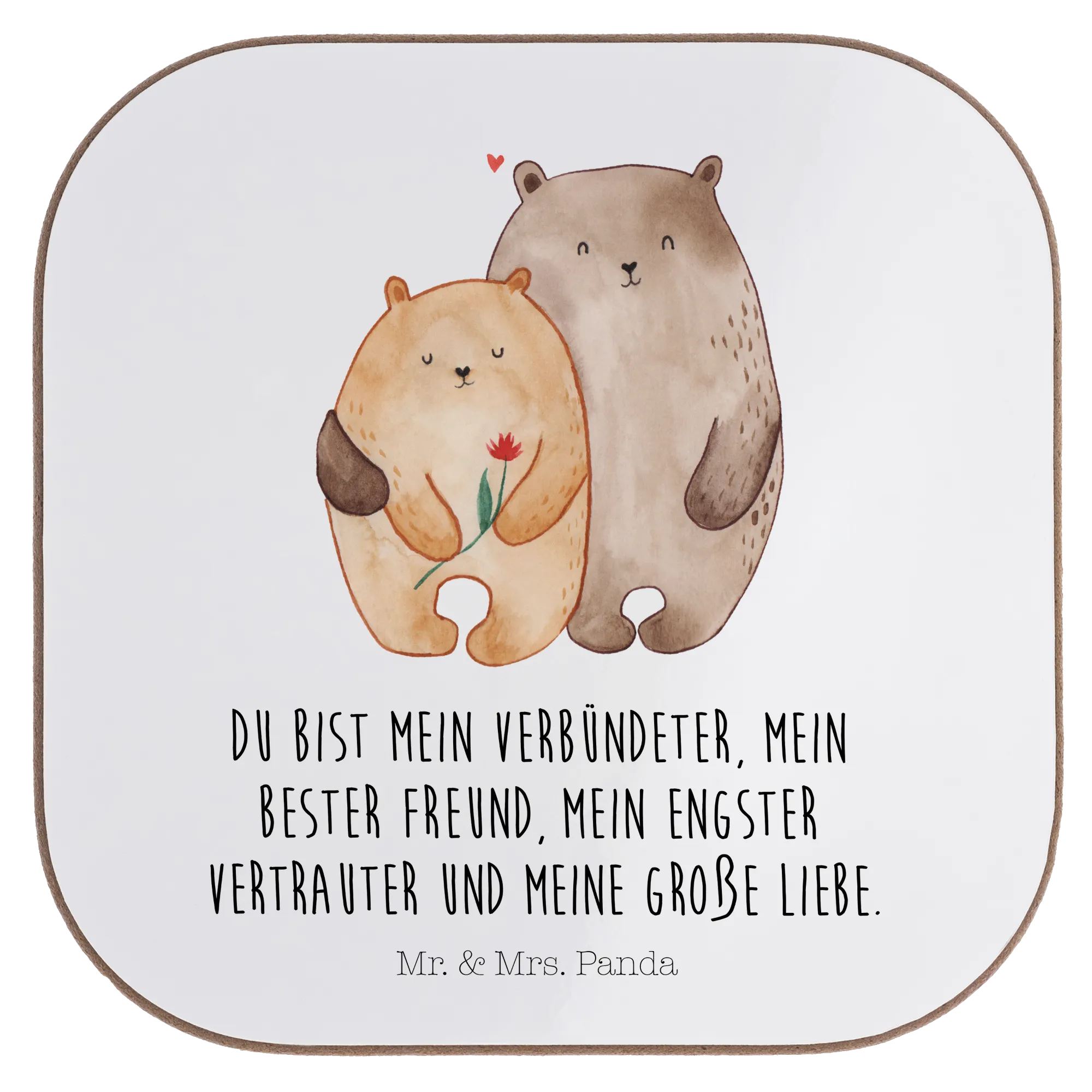 Square coaster Bears in love - with a saying - White