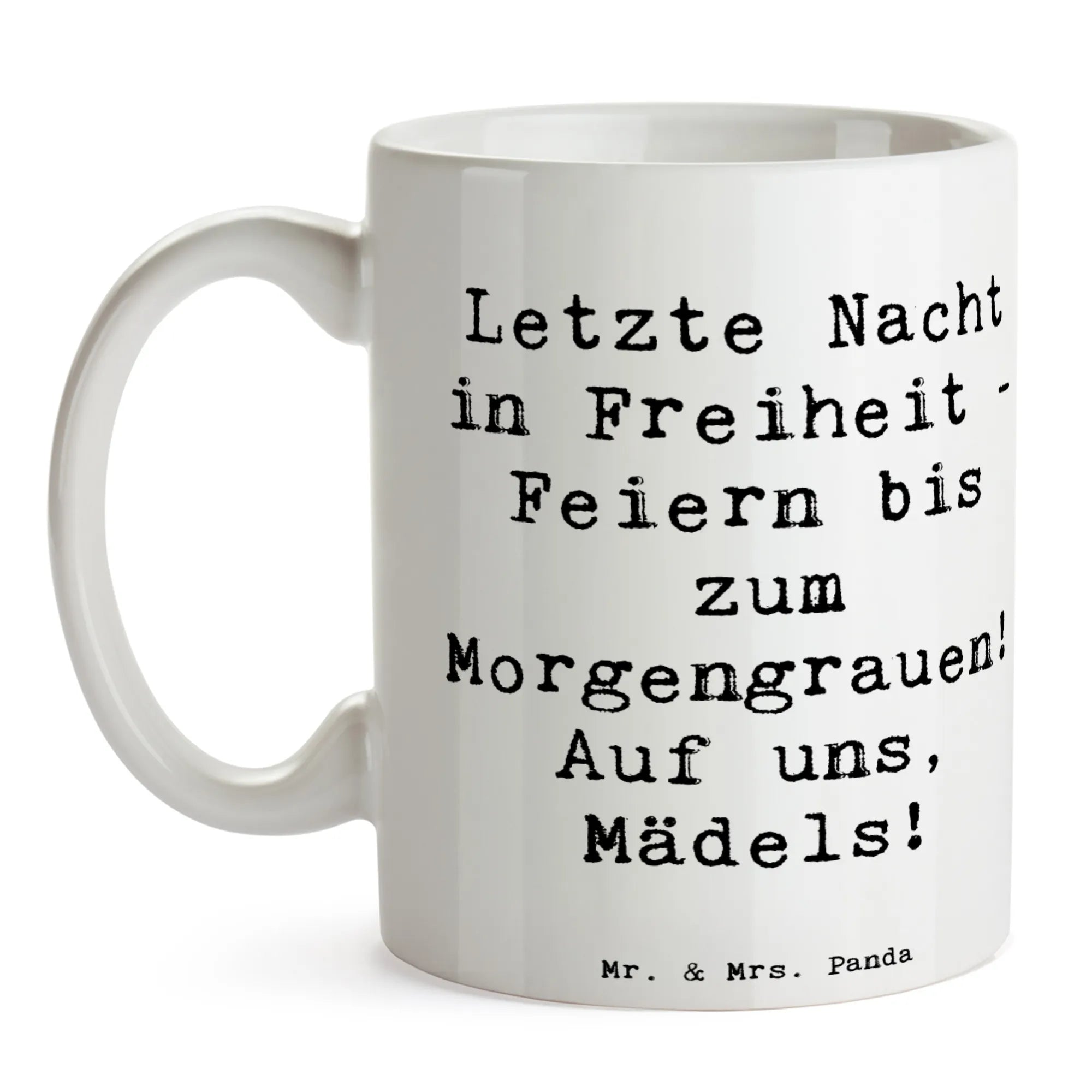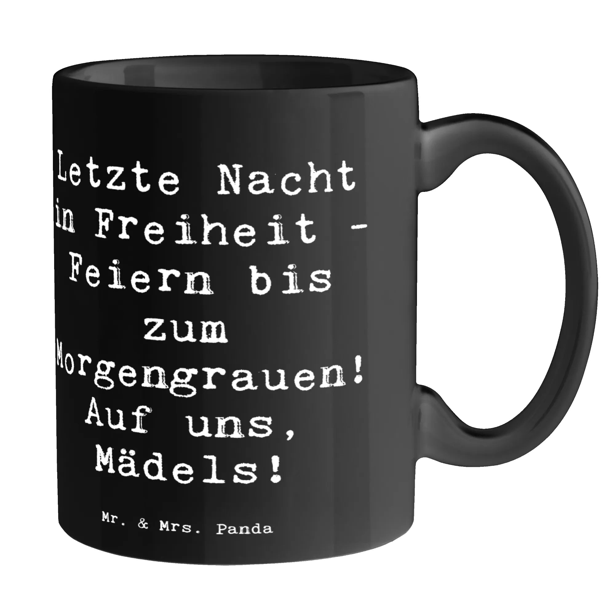Mug Saying Letzte Nacht in Freiheit - Feiern bis zum Morgengrauen! Auf uns, Mädels! - Black