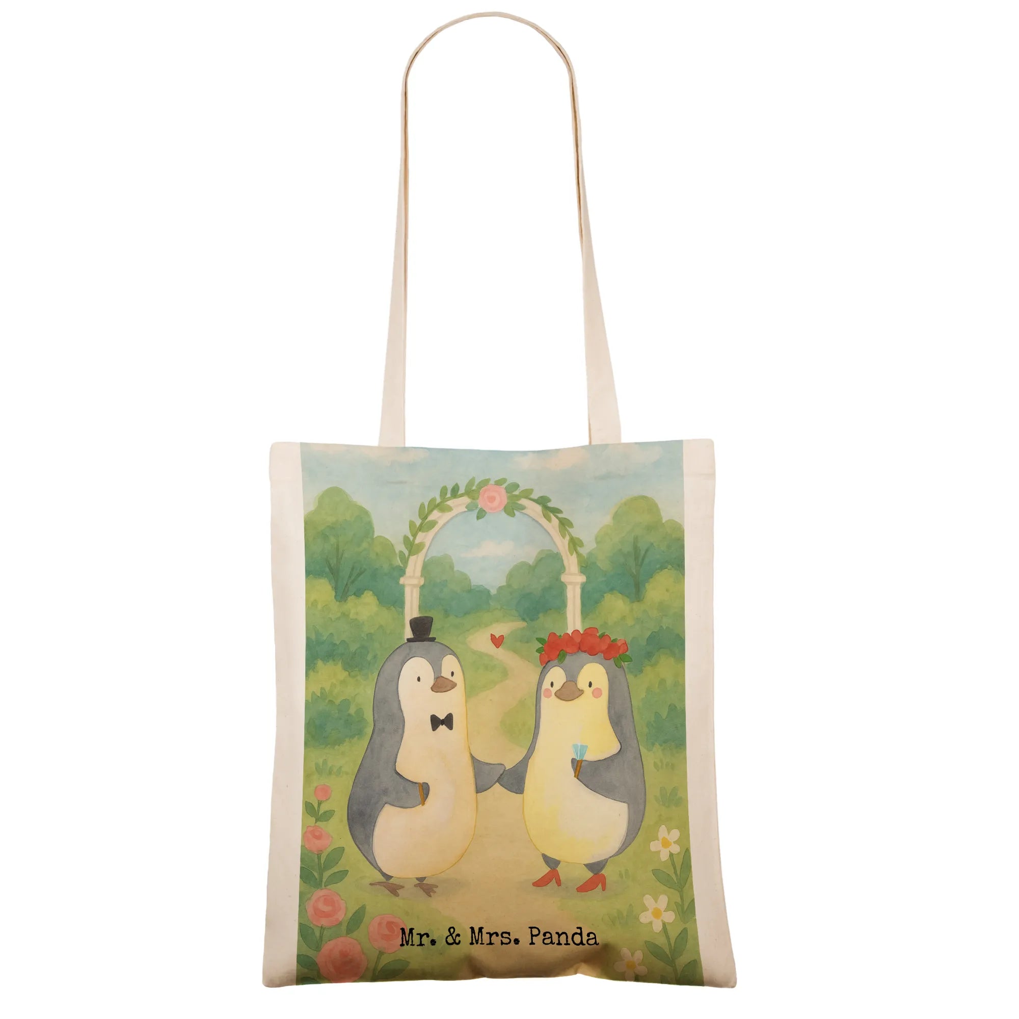 Say hello to the most stylish companion for your outings – the Mr. & Mrs. Panda Tote Bag! With a robust design that features 420 mm (17 inches) in width and 380 mm (15 inches) in height, it's the ideal tote for carrying your essentials. Crafted with 100% cotton and a thickness of 140g/m², this shopper is built to last. The high-quality prints with Mr. & Mrs. Panda's cute motifs will surely turn heads, making this bag not just practical but also a delightful statement piece. Its 70 cm long straps offer comfortable wear over the shoulder. Whether you’re heading to the grocery store or hitting the beach, this tote bag merges elegance with utility effortlessly.
