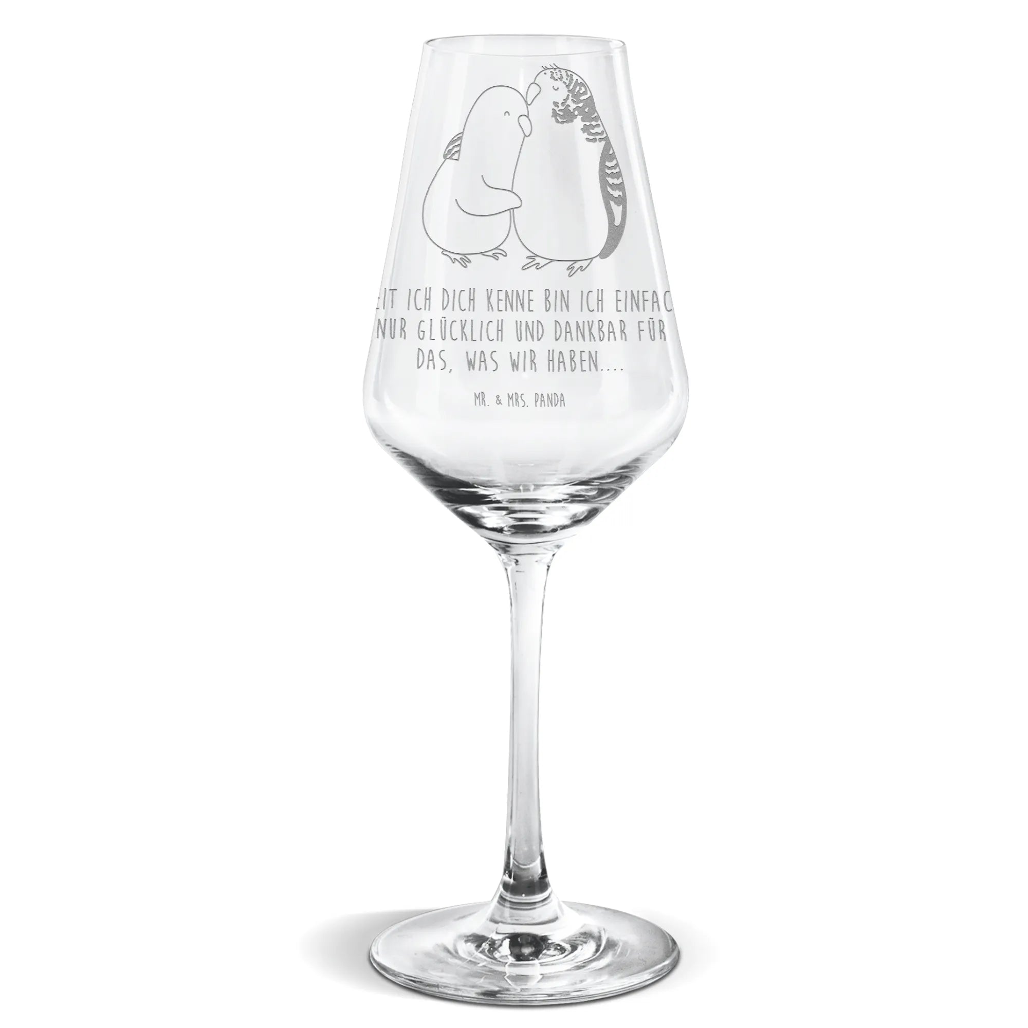 Make your wine moments special with the Mr. & Mrs. Panda White Wine Glass. With a striking height of 209 mm (8 inches) and a circumference of 81 mm (3 inches), this glass can comfortably hold up to 500 ml (17 oz) of your preferred white wine. Adorned with exquisite laser-engraved messages and charming designs, it brings a delightful ambiance to every sip. Expertly crafted from robust glass, this piece is designed to last, bringing elegance and joy to your gatherings. Its dishwasher-safe feature ensures easy maintenance, allowing you more time to enjoy every moment. Perfect as a thoughtful gift or as a personal indulgence, this White Wine Glass is a must-have for those who appreciate fine wine. Toast to special occasions or everyday achievements; this glass makes it all the more memorable. Celebrate with style and create cherished memories with every pour!