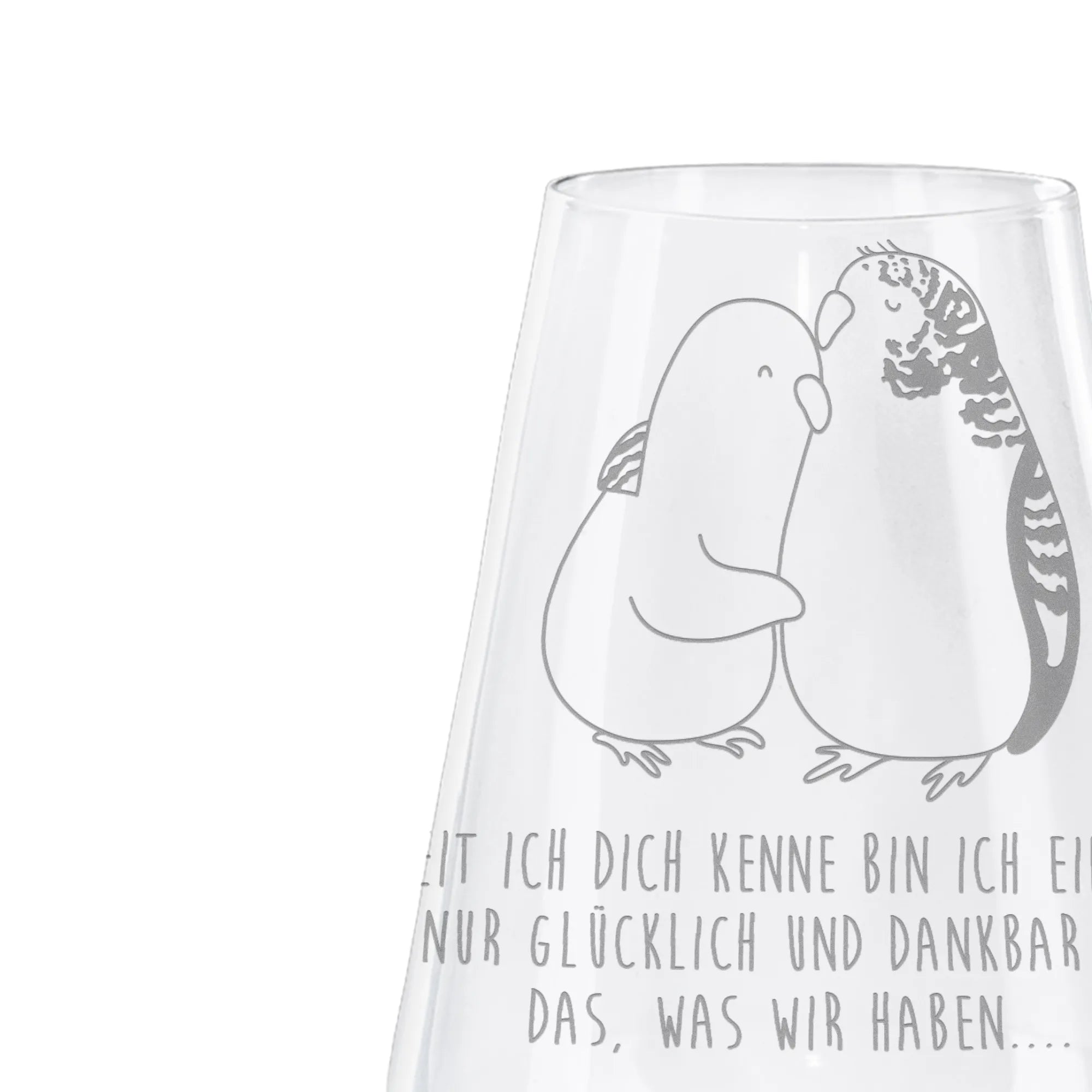 White Wine Glass Parakeets in love - with saying
