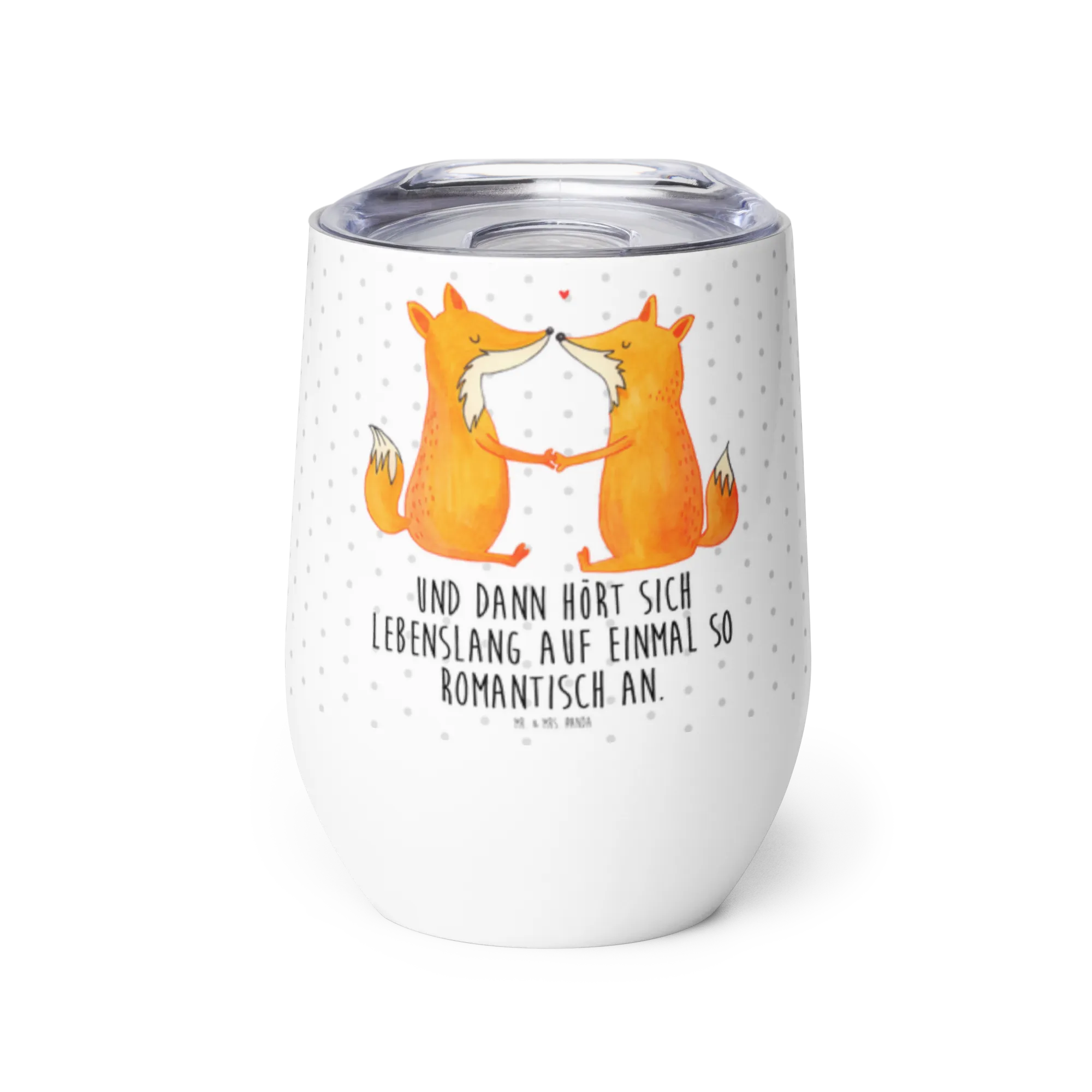 Enjoy every moment with the stylish wine cup from Mr. & Mrs. Panda! This delightful cup has a 375 ml (12 oz) capacity and features innovative double-wall vacuum insulation that guarantees drinks maintain their desired temperature for up to 5 hours. Standing at 120 mm, it brings flair to any occasion. Adorned with charming designs and sentiments, it’s perfect for celebrating life’s little pleasures, whether at a gathering with friends or a quiet evening at home. This wine cup makes an excellent gift for anyone who enjoys beautiful drinkware. Please remember that it's best to hand wash to keep the design pristine. Raise your glass to life and love with Mr. & Mrs. Panda!