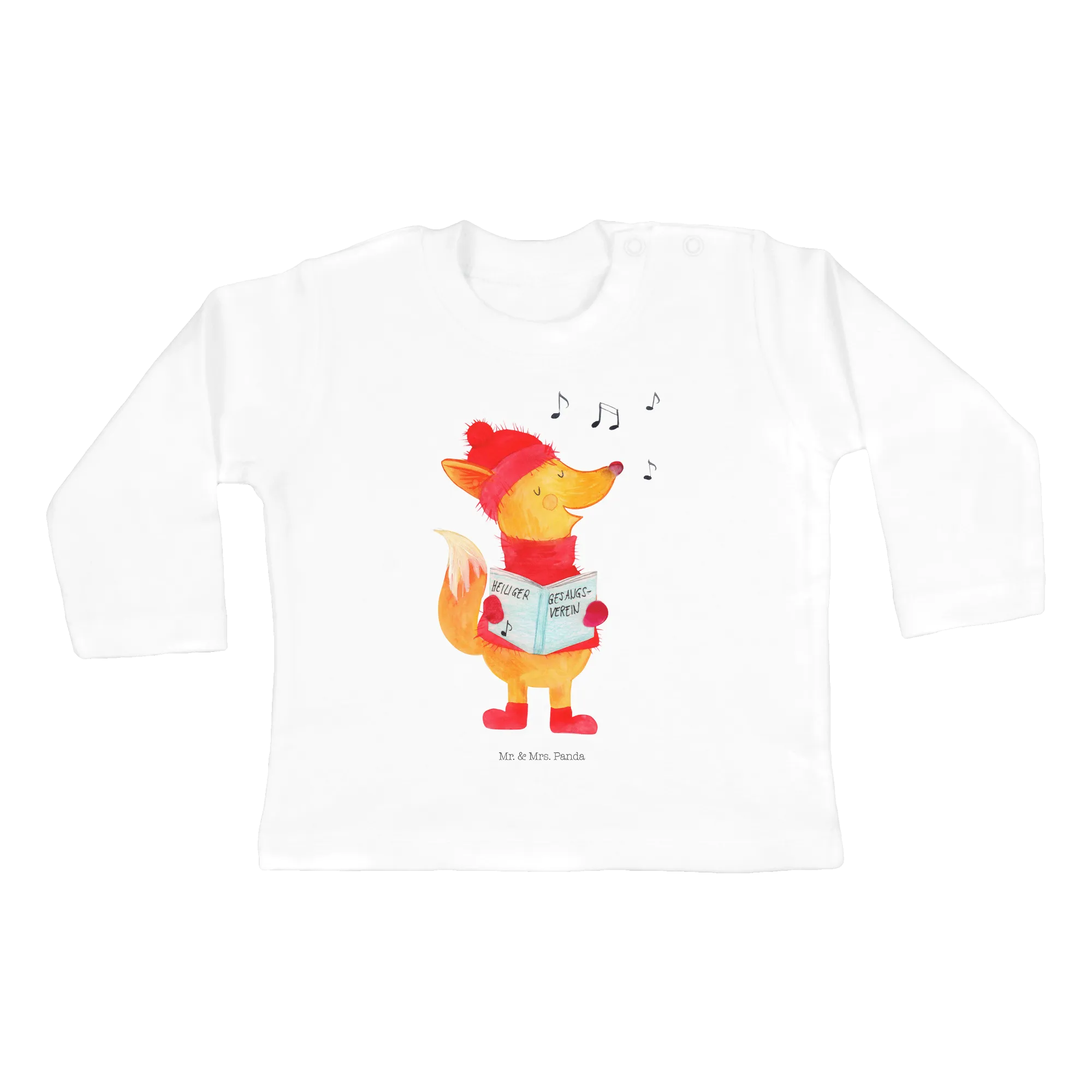 Imagine your little angel bundled up in this adorable long-sleeve top, featuring our cheery Fox Singer motif. This enchanting fox, adorned with a cozy red hat and matching scarf, captures the essence of Christmas with its cheerful spirit. The fox seems to be joyfully singing from a songbook titled 'Heiliger Gesangsverein,' surrounded by musical notes that sing of holiday cheer. This design brings warmth and happiness, evoking the magic of snowy winter days, festive gatherings, and sweet holiday memories.