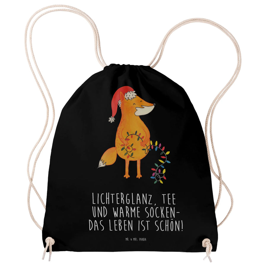 Drawstring bag Fox Christmas - with a saying - Schwarz