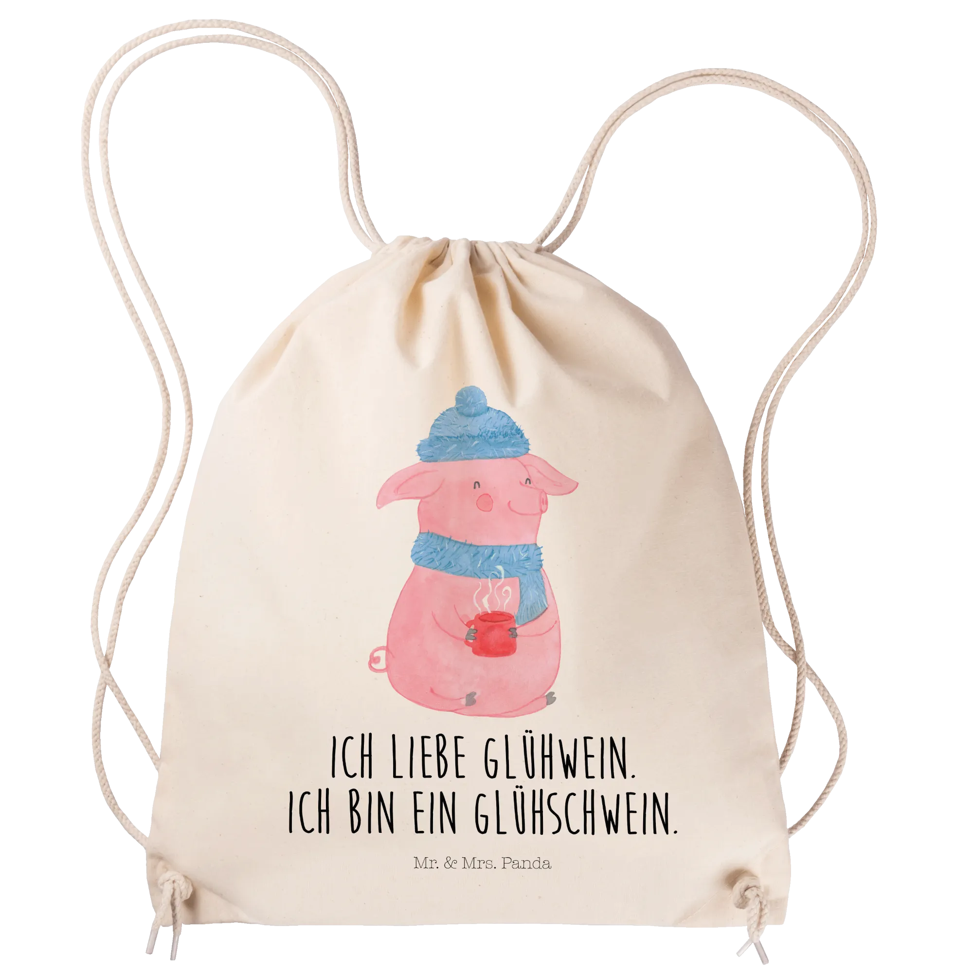 Drawstring bag Pig Mulled wine - with a saying - Transparent