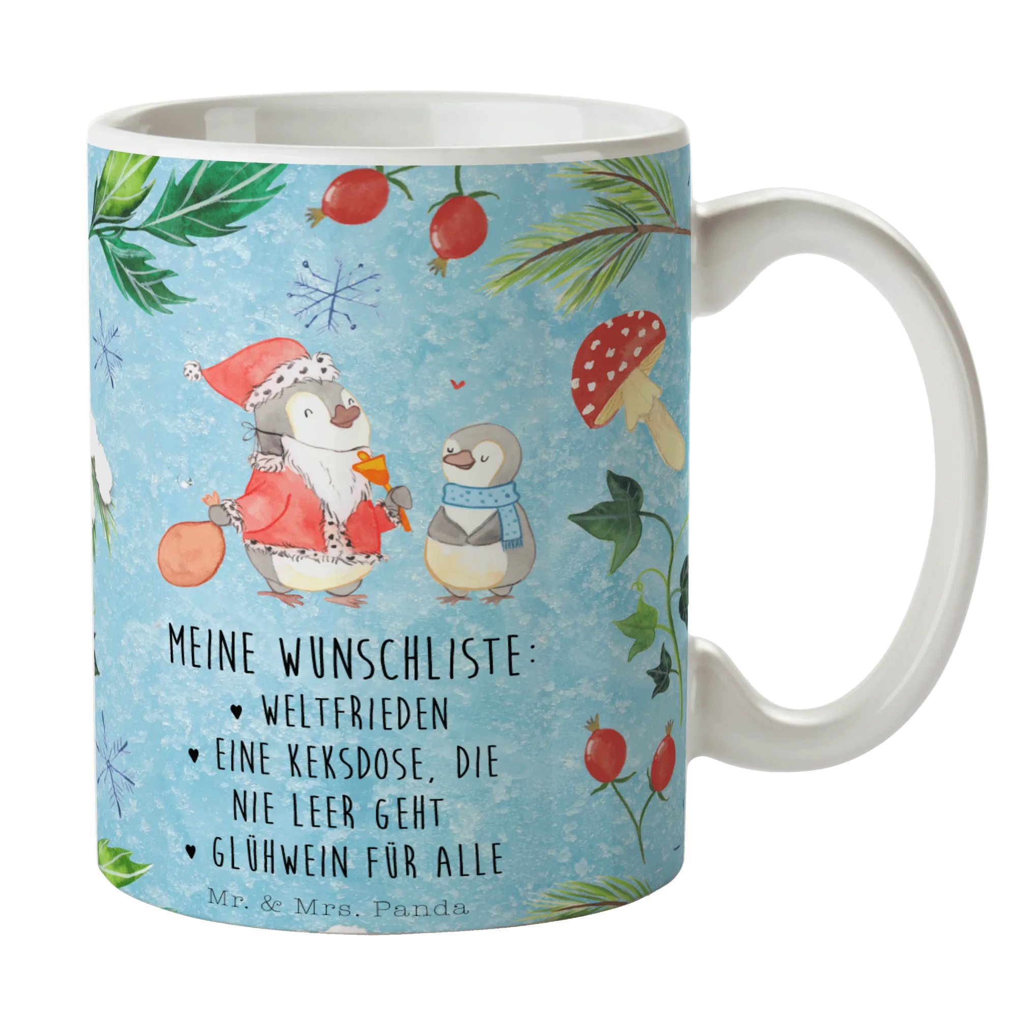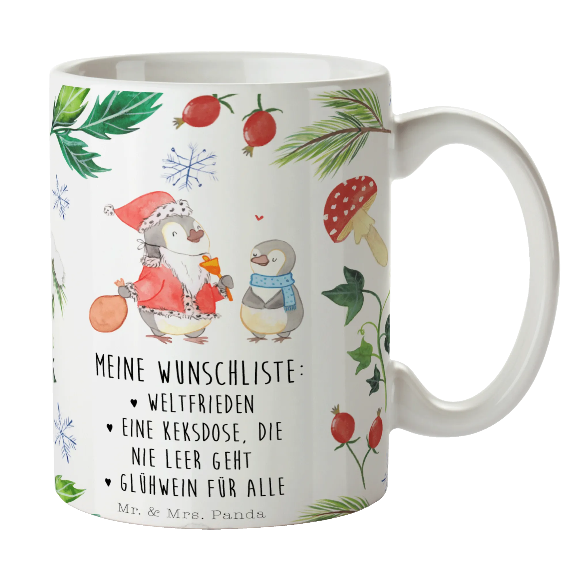 Mug penguin wish list gift mug, tea mug, coffee mug, novelty mug, personalized mug, office mug, mug with designs, mug, mug with quotes, ceramic mug, latte mug, custom mug, porcelain mug, Winter, Christmas, Christmas time, snow