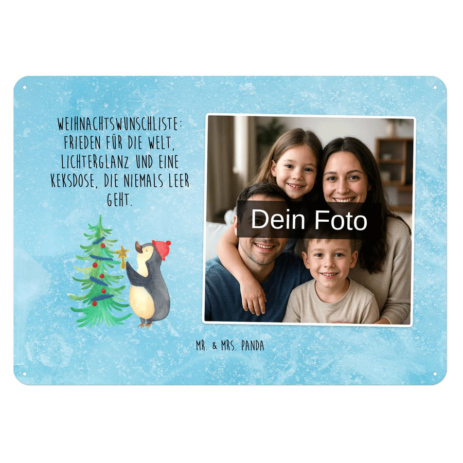 Personalized Photo Metal Sign penguin Christmas tree - DIN A6 - Eisblau