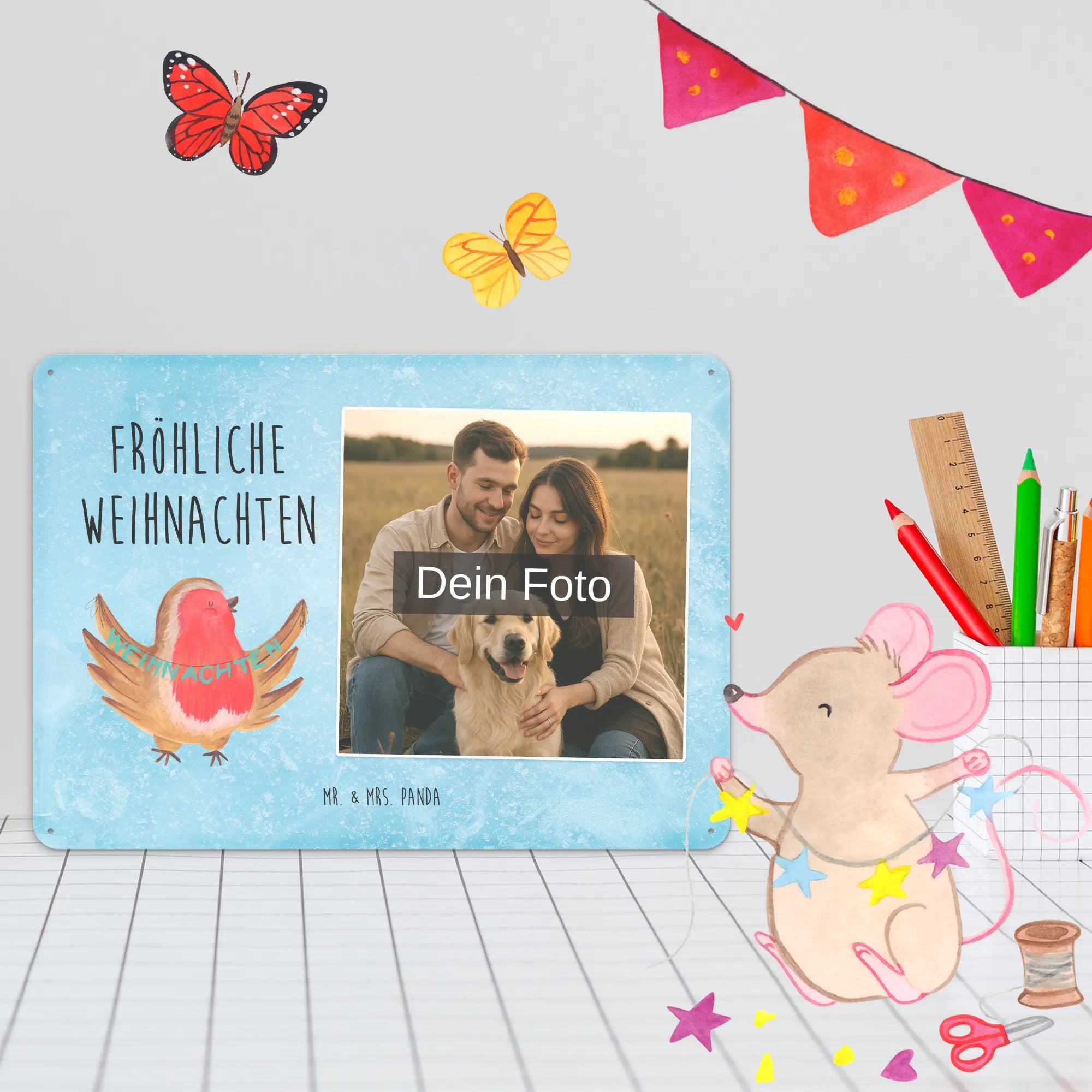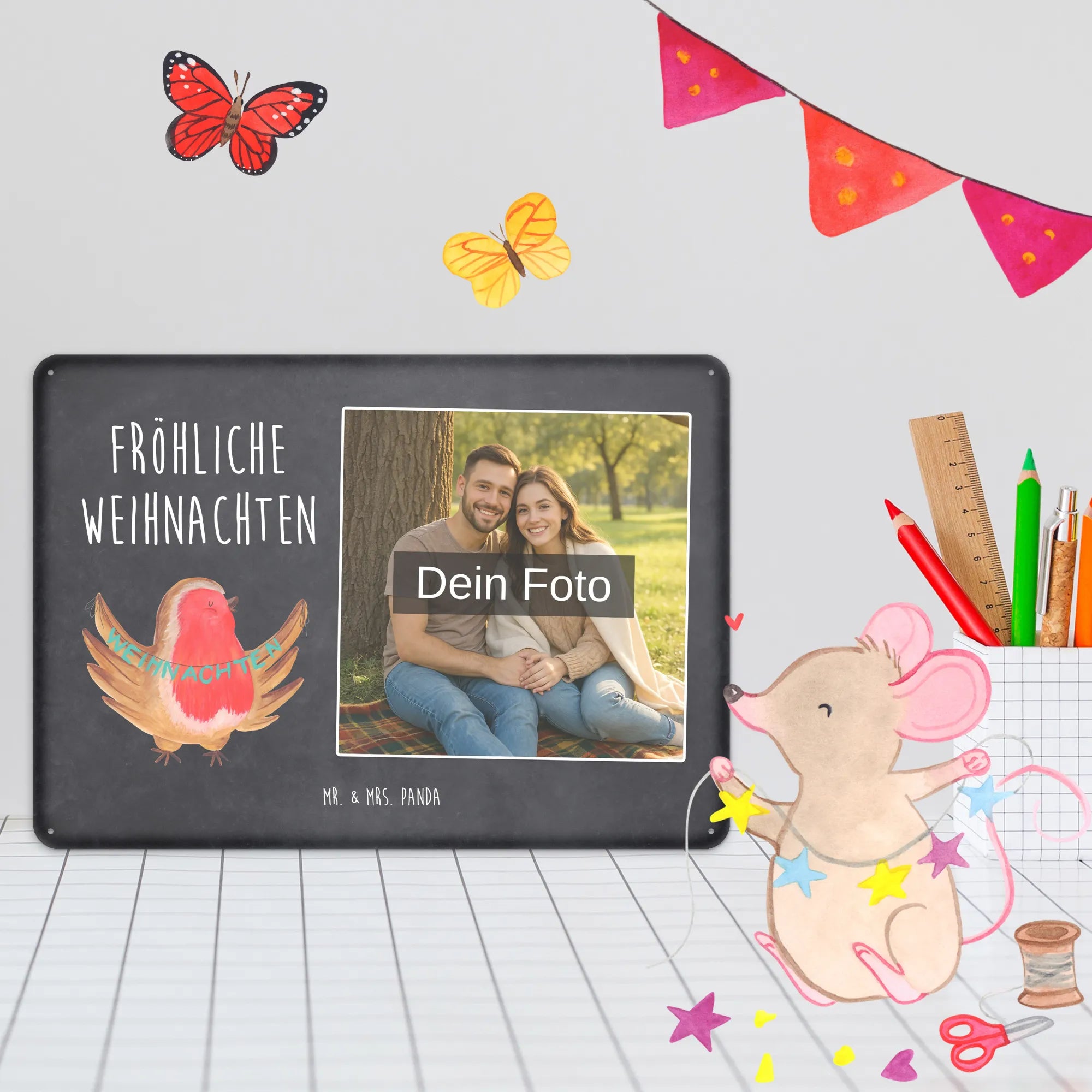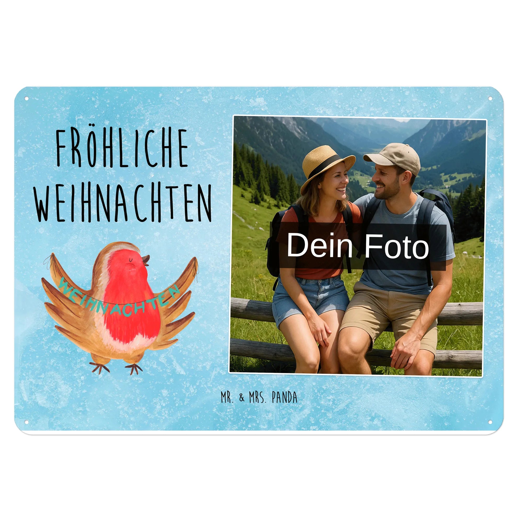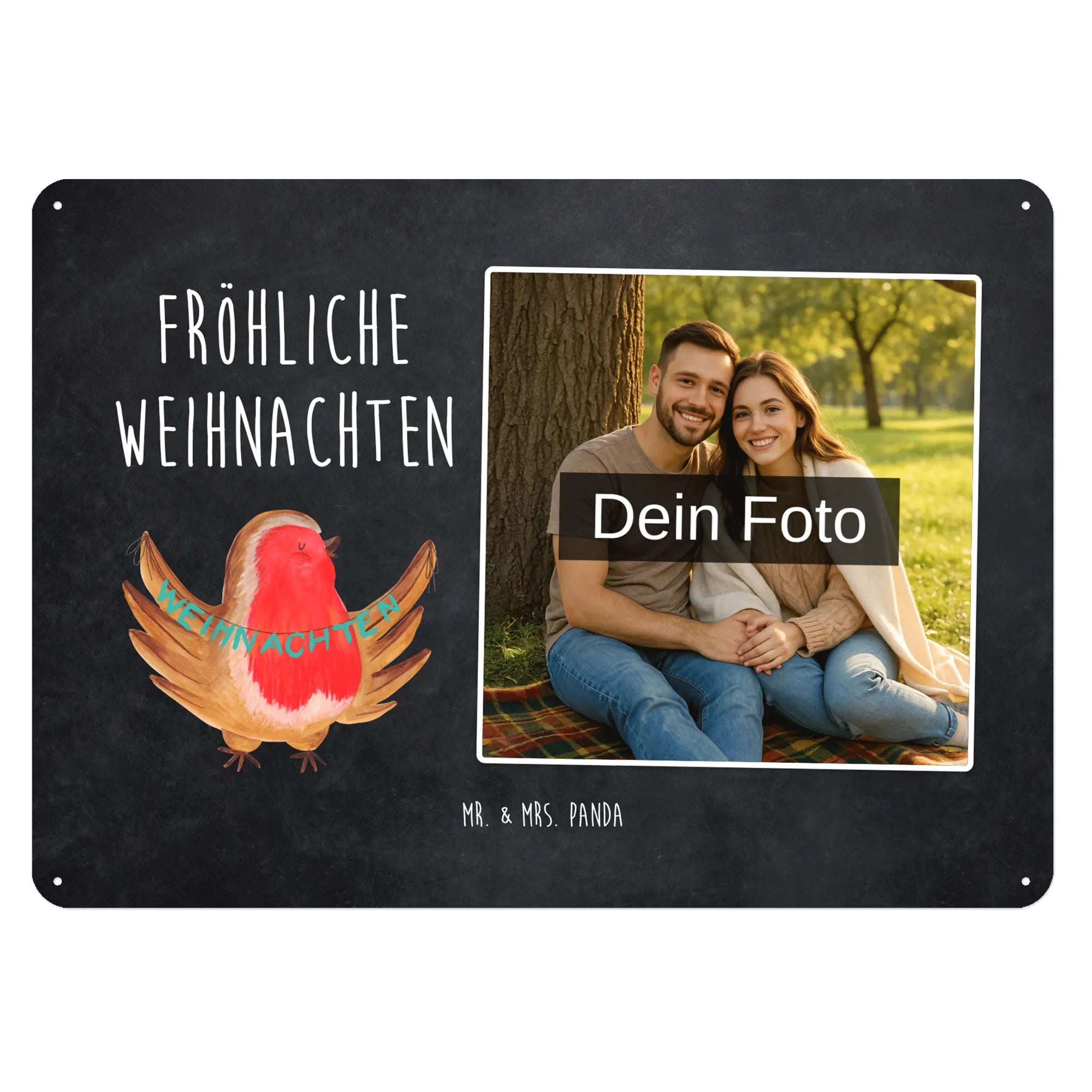 Mach es persönlich: Lade dein Foto hoch und gestalte jetzt dein Foto-Blechschild personalisiert mit Mr. & Mrs. Panda – schnell, einfach und liebevoll gestaltet.