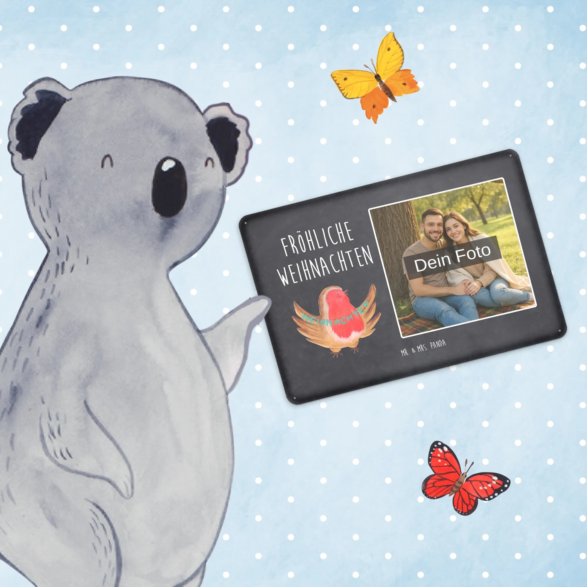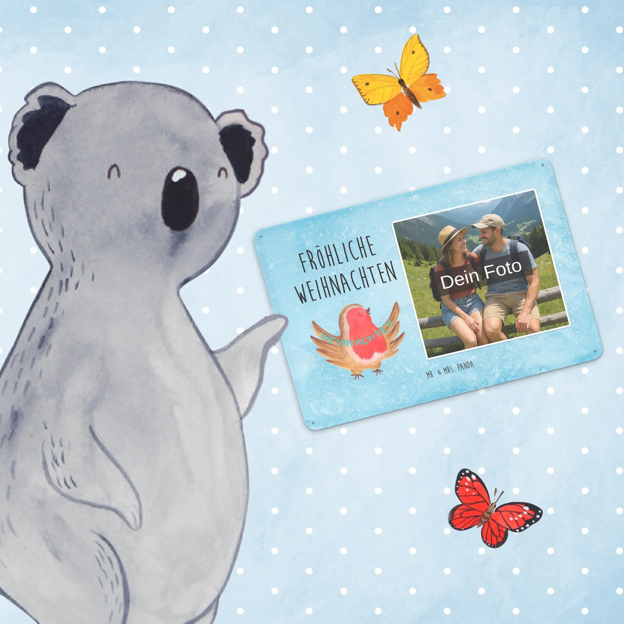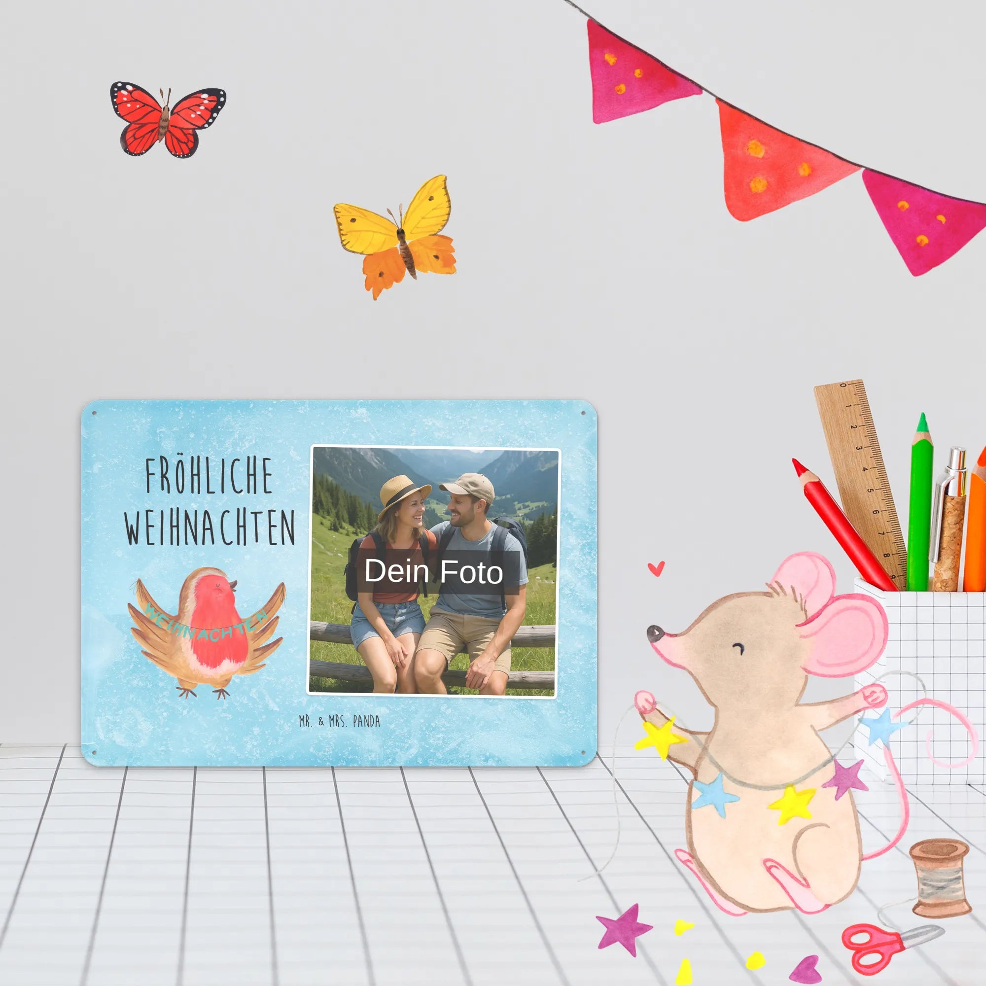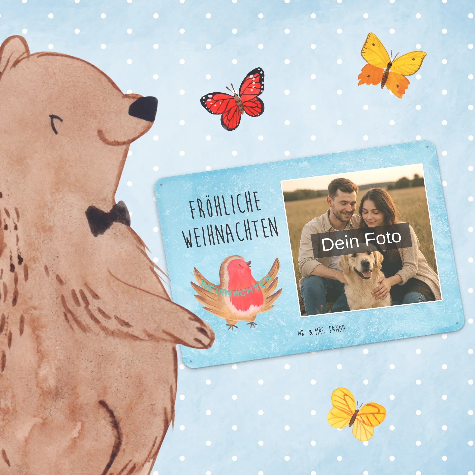 Mach es persönlich: Lade dein Foto hoch und gestalte jetzt dein Foto-Blechschild personalisiert mit Mr. & Mrs. Panda – schnell, einfach und liebevoll gestaltet.
