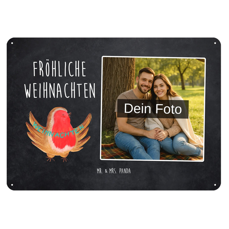Personalized Photo Metal Sign robin Christmas - DIN A6 - Chalkboard