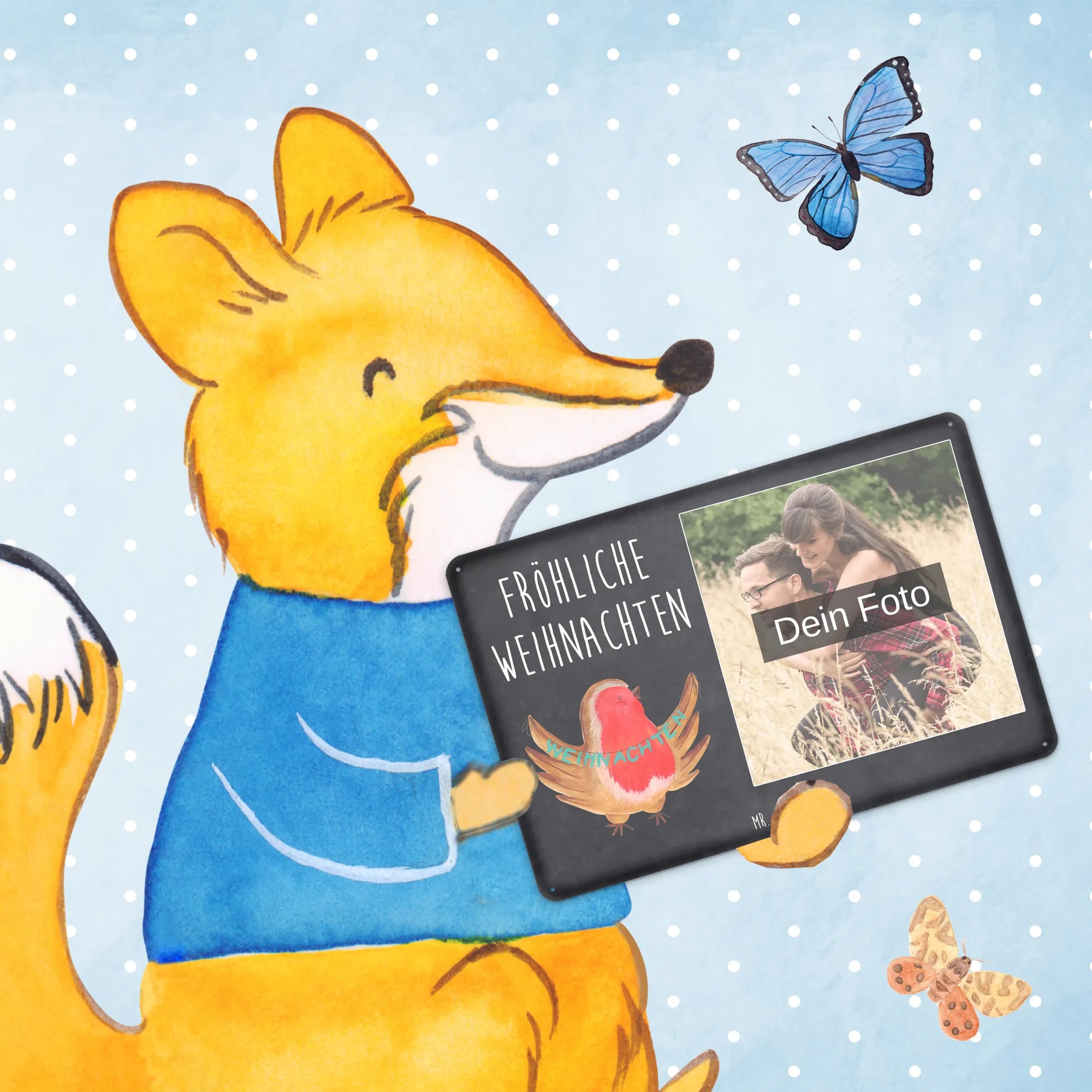 Juhuu – die schönste Zeit des Jahres beginnt! Unser personalisiertes Foto Blechschild „Rotkehlchen Weihnachten“ aus der Winter Kollektion von Mr. & Mrs. Panda bringt die warme, heimelige Stimmung von Advent und Heiligabend direkt an deine Tür oder an die Wohnzimmerwand. Das liebevoll handgezeichnete Rotkehlchen sitzt zwischen Lichterglanz und Tannenzweigen und zaubert sofort ein Lächeln ins Gesicht.