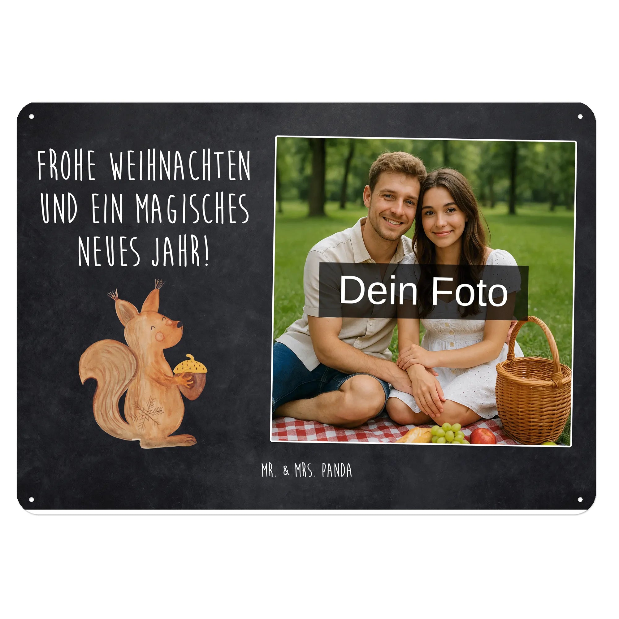 Personalized Photo Metal Sign Squirrel Christmas - DIN A6 - Kreidetafel