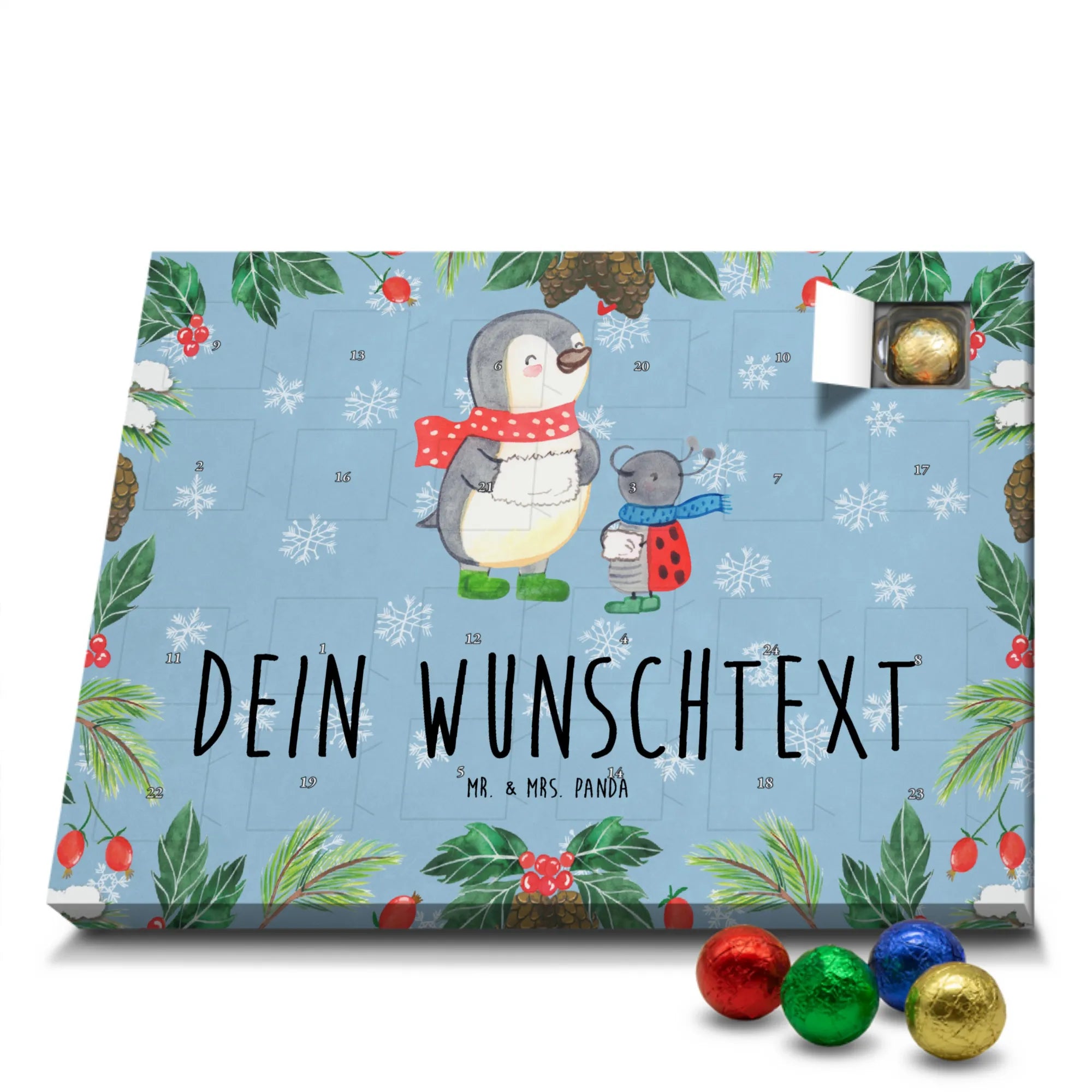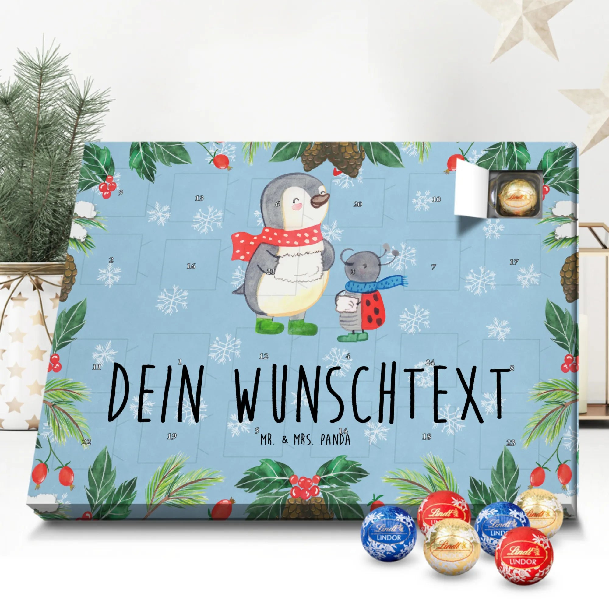 As winter unfolds its icy charm, take a peek into this whimsical scene where our cheerful penguin struts with green boots and a vibrant polka-dotted scarf. Alongside him, the adorable Smörle, resembling a ladybug, dons her blue accessories, radiating delight and a spirit of friendship. Their sincerity shines through, perfectly capturing the essence of the holidays with the saying: 'Oh, du wunderbare Weihnachtszeit!' This motif reflects the joy of giving and receiving heartfelt Christmas greetings, reminding us of the warmth of companionship during this magical season. Picture this enchanting duo bringing smiles to your holiday cards, as they invite you to spread cheer and gratitude. Whether cozy at home or out celebrating, let the spirit of laughter and joy fill your heart and inspire those around you. Make this motif a part of your festive décor, and let it remind you of the love and connection that we cherish at Christmas.