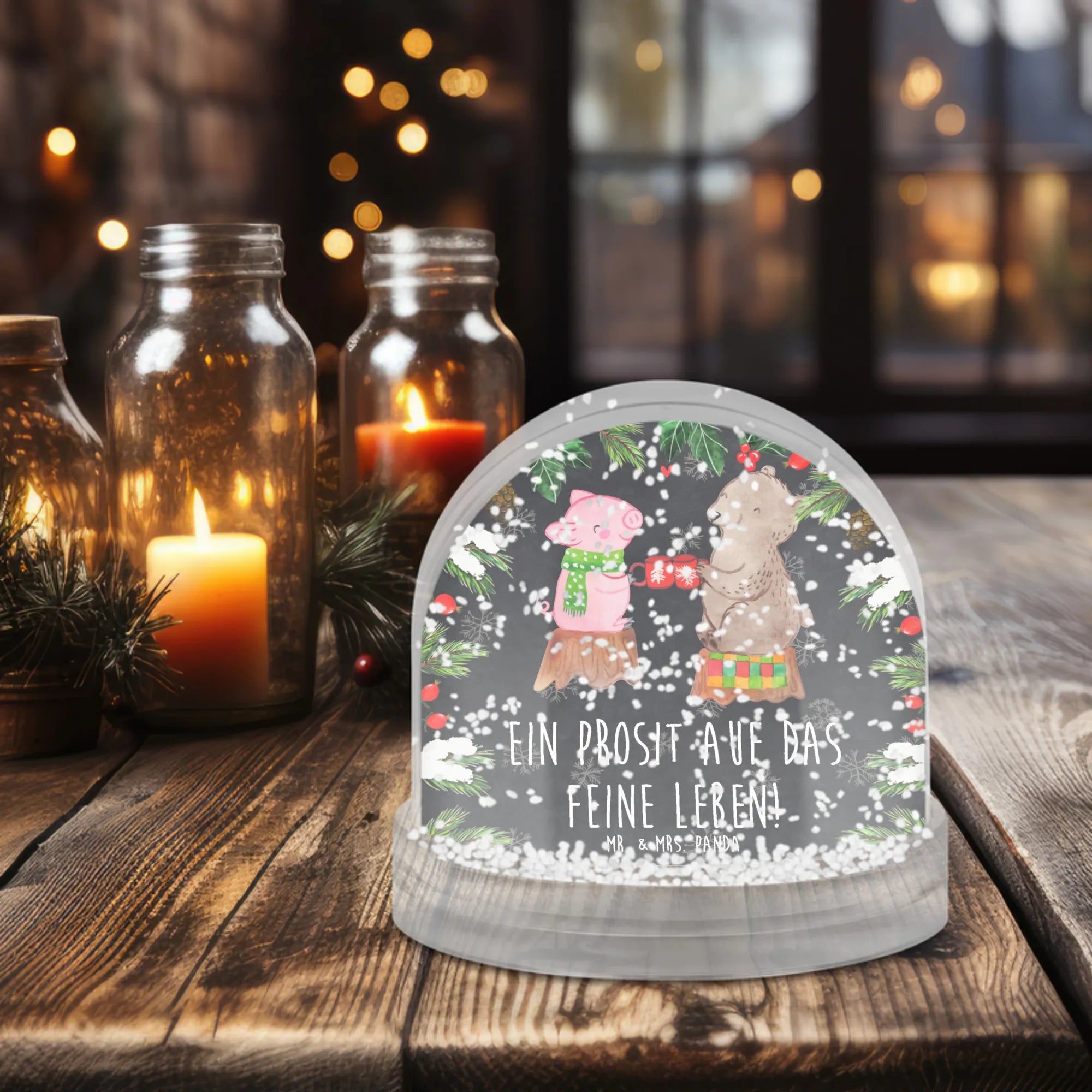 Snow globe Glowing Pig Bash - natural paper