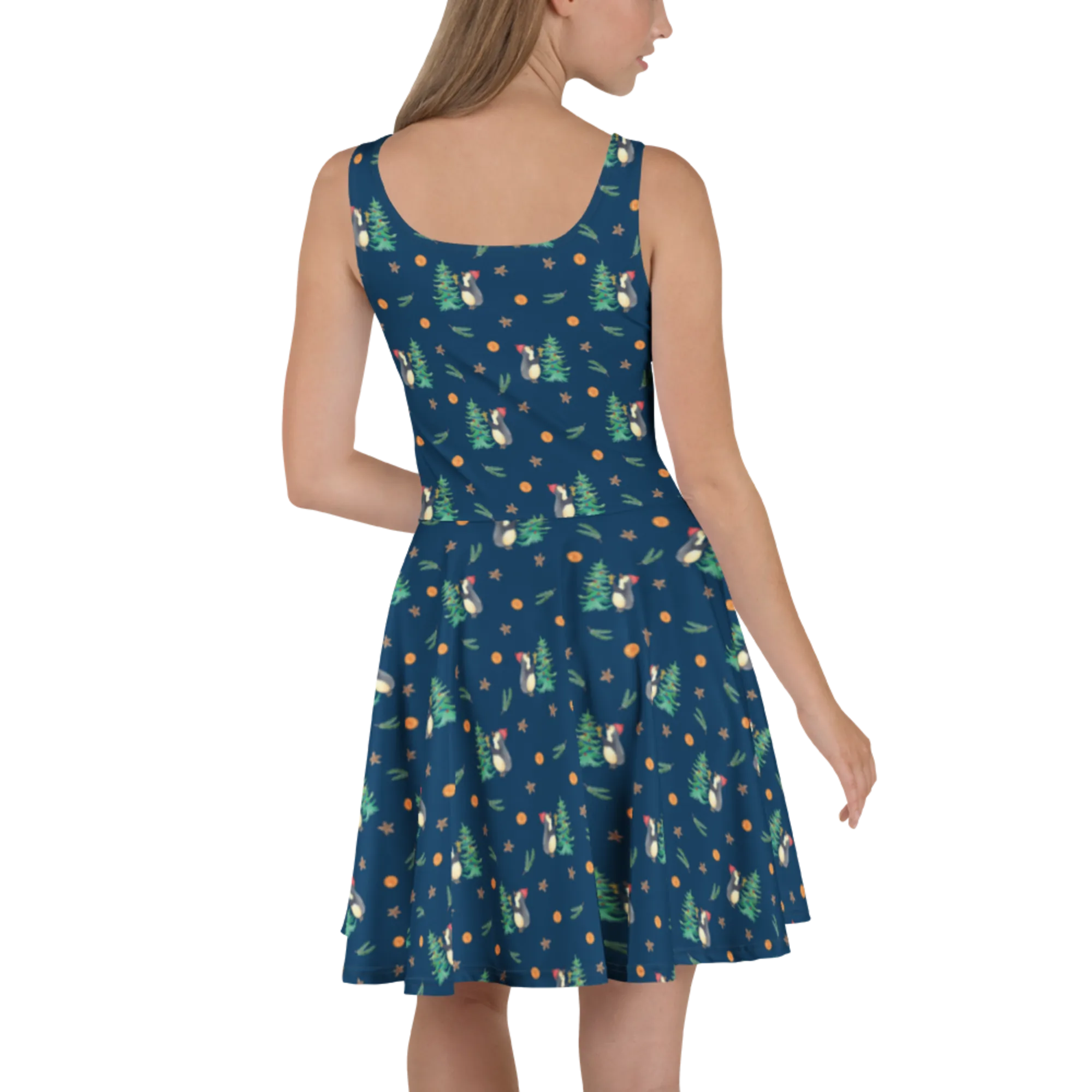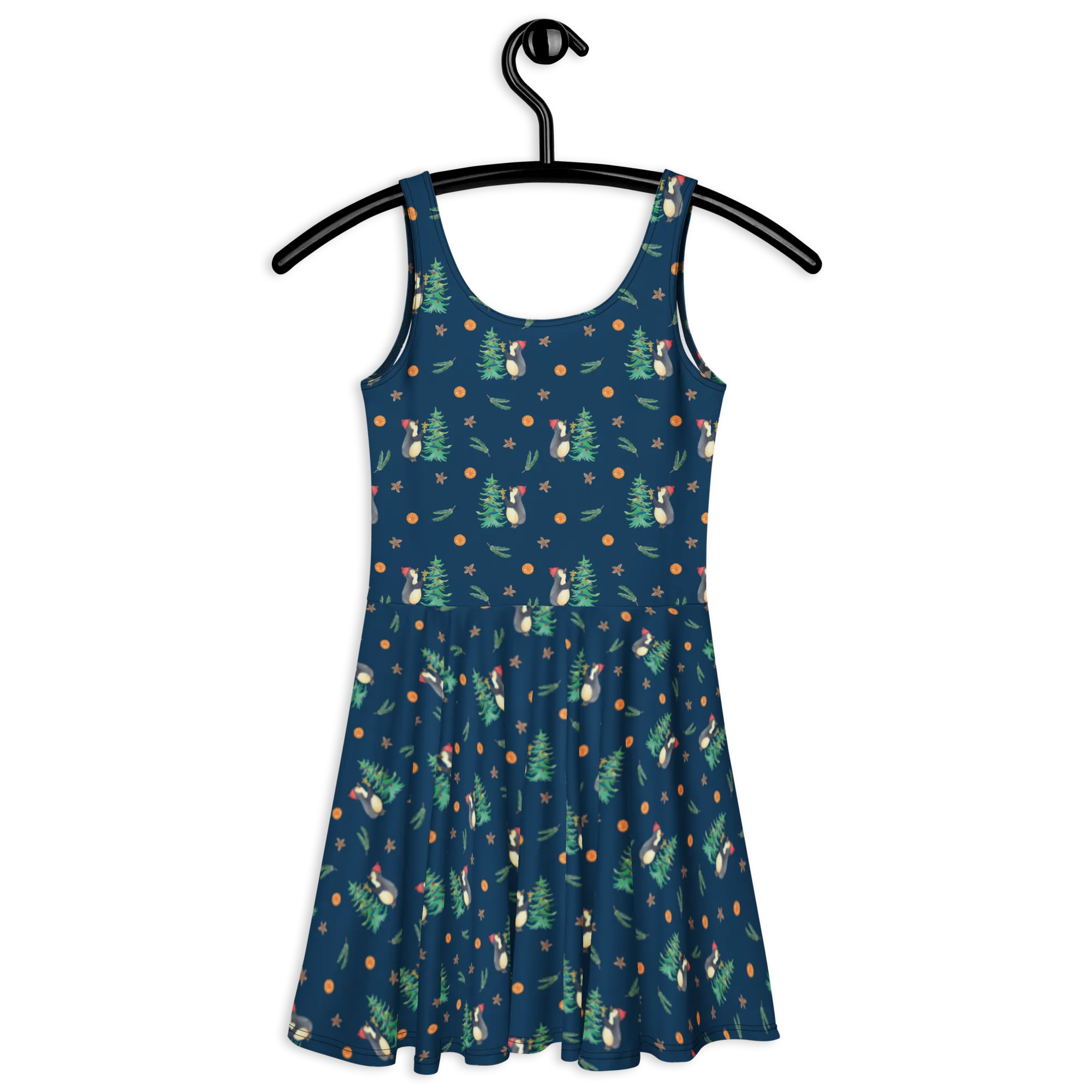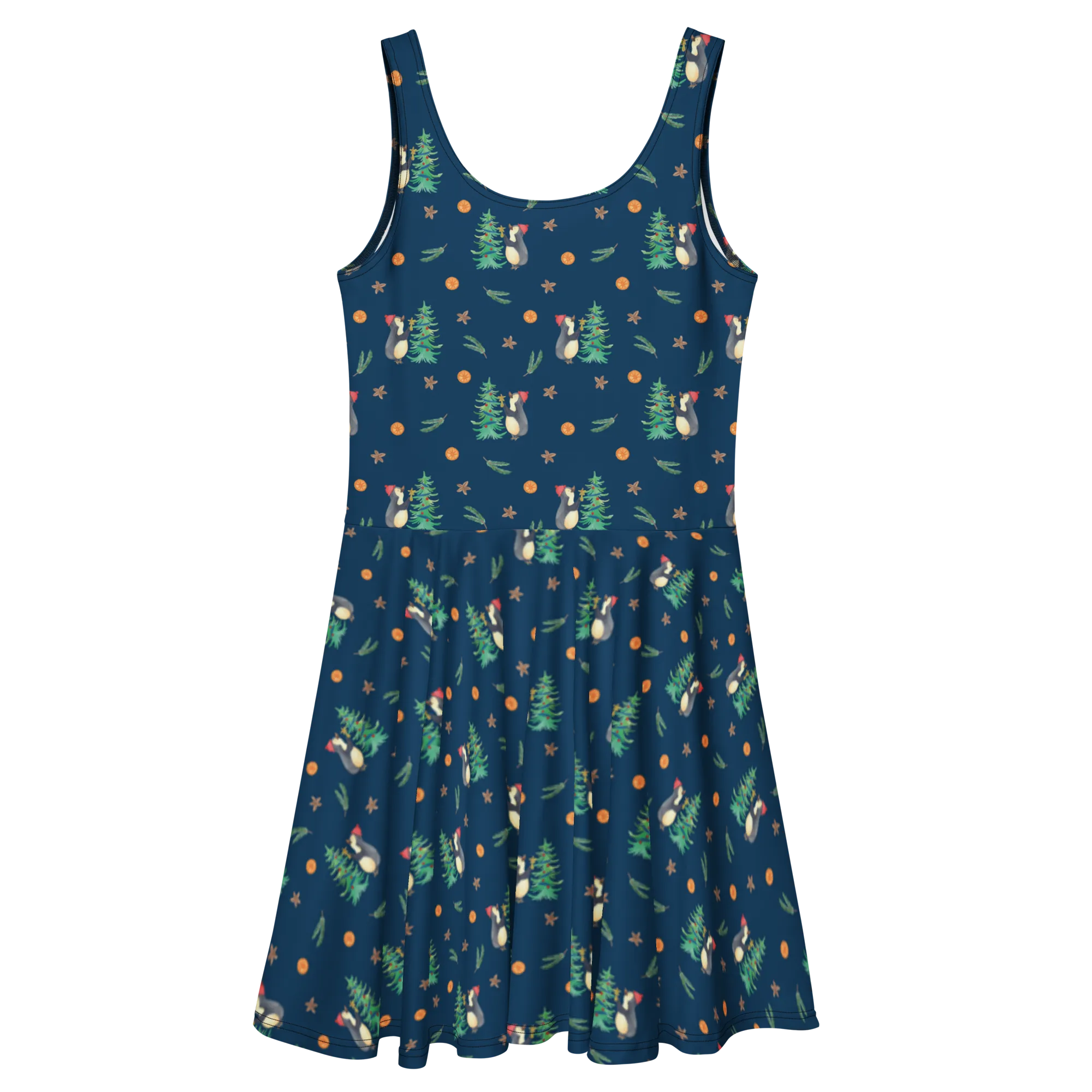 Imagine slipping into this beautifully designed dress, featuring an adorable hand-drawn penguin decorating a Christmas tree, all beautifully displayed on a vibrant backdrop. It’s not just a summer dress; it’s a piece that radiates joy and warmth, perfect for those who wish to carry the holiday spirit wherever they go!