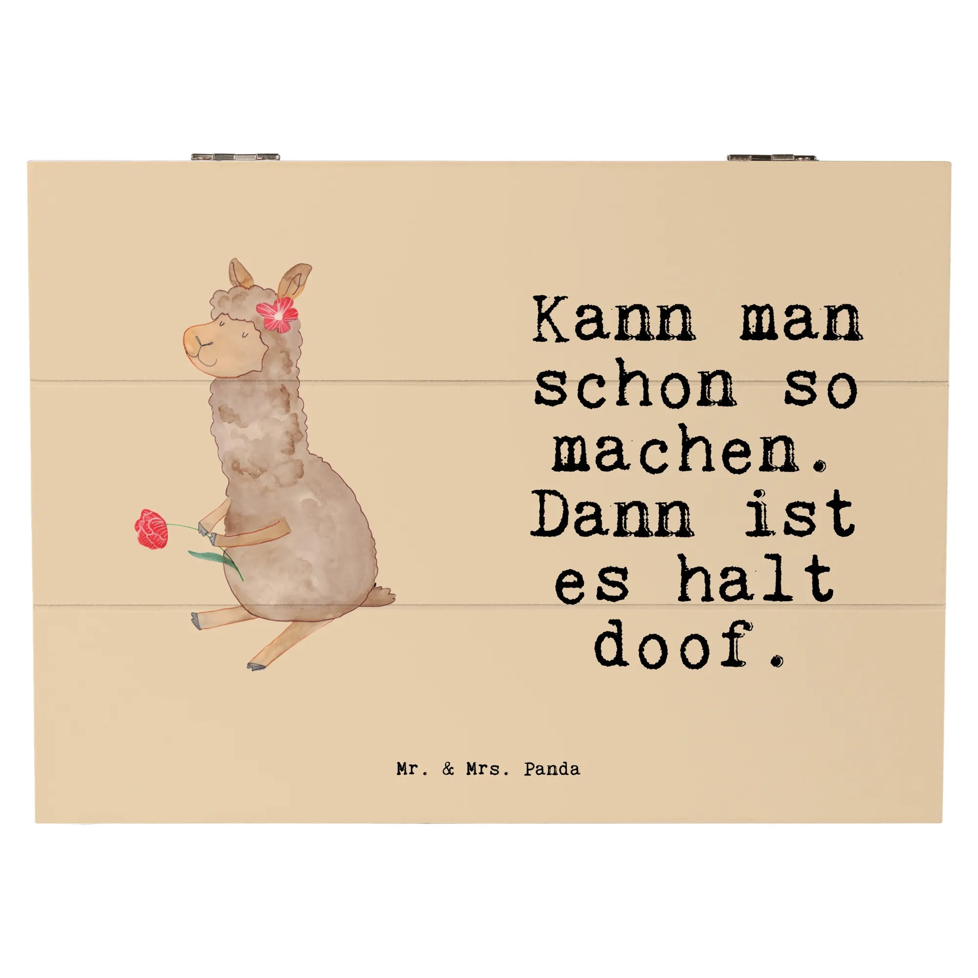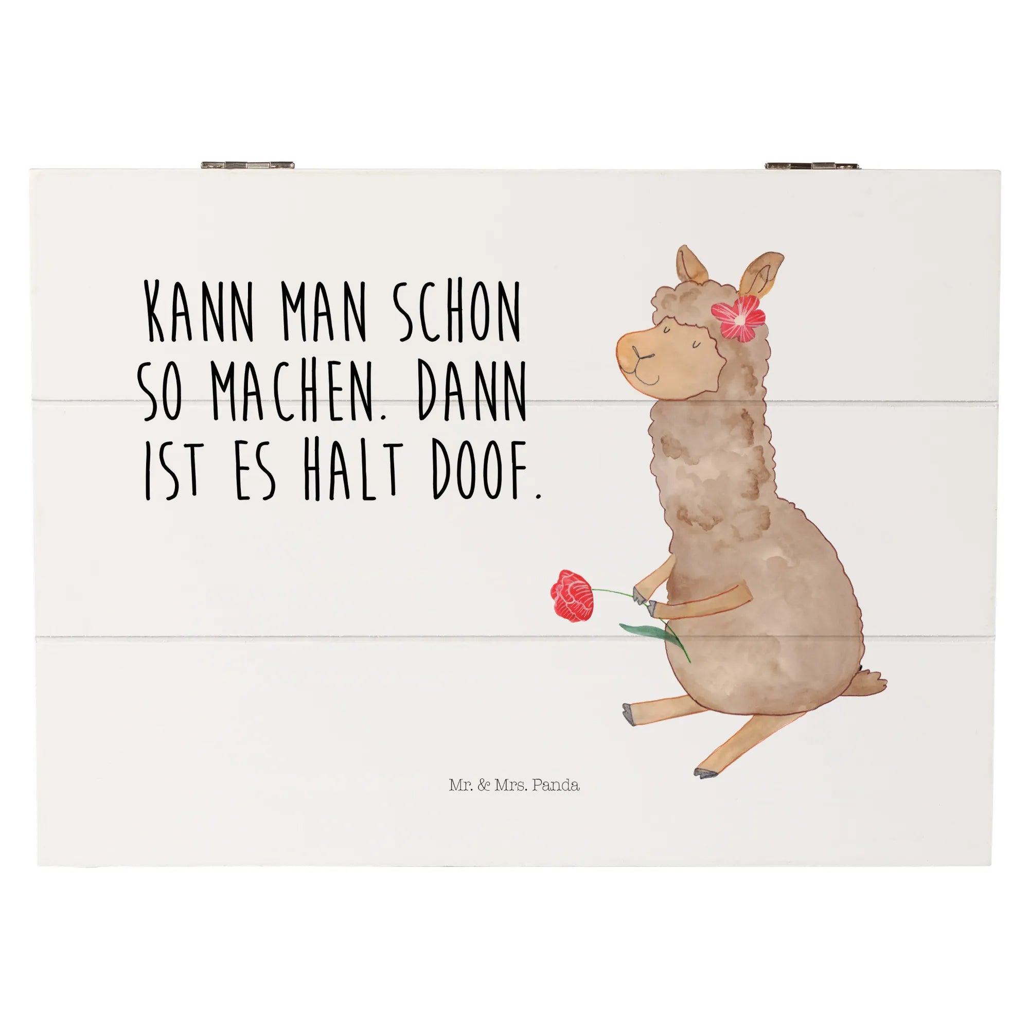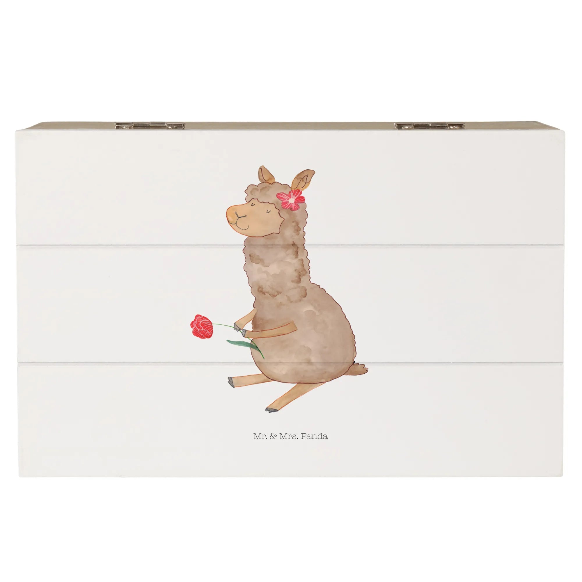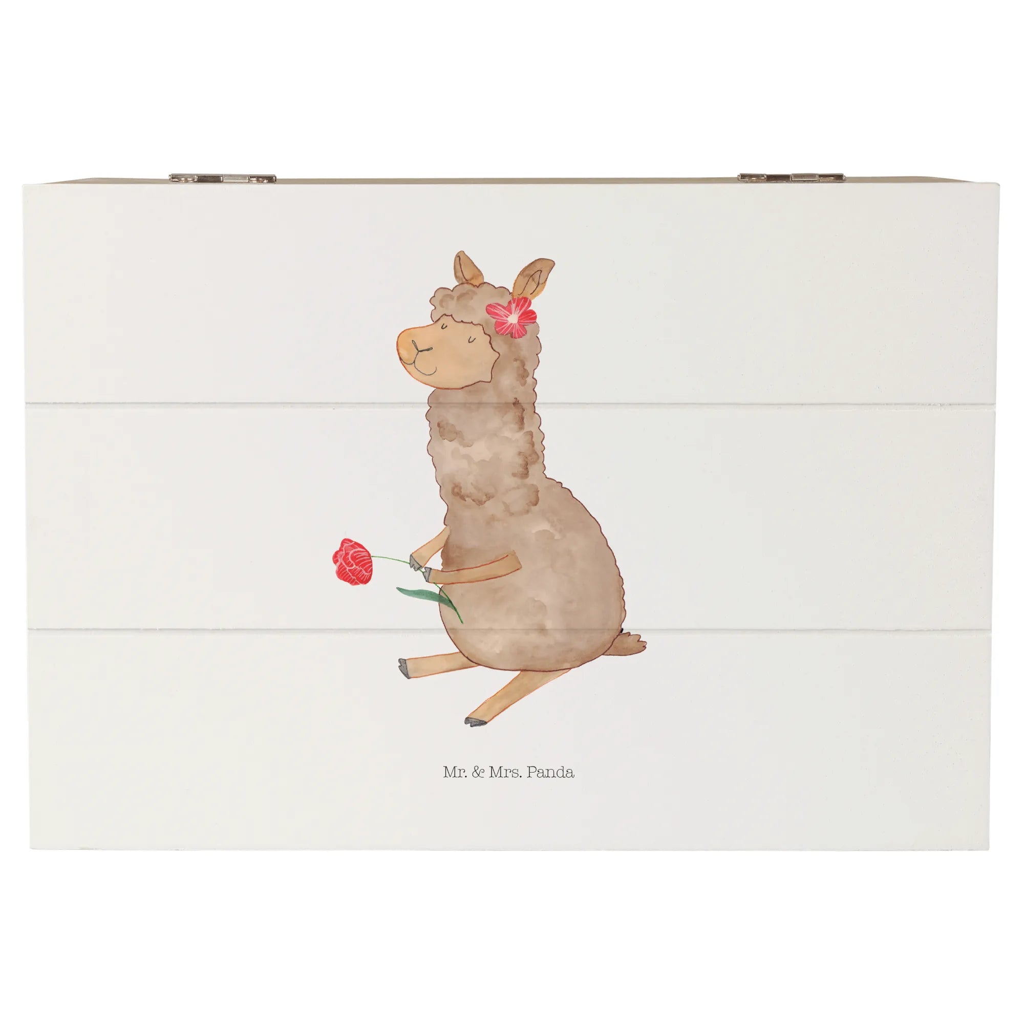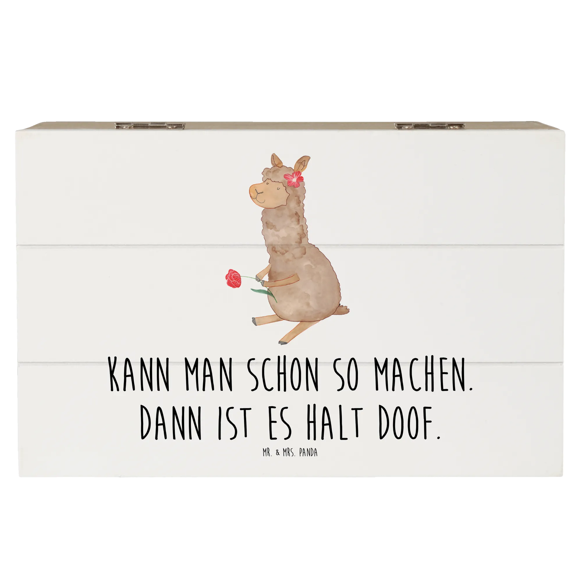 Wooden chest alpaca flower - 22 x 15 cm - with saying - White