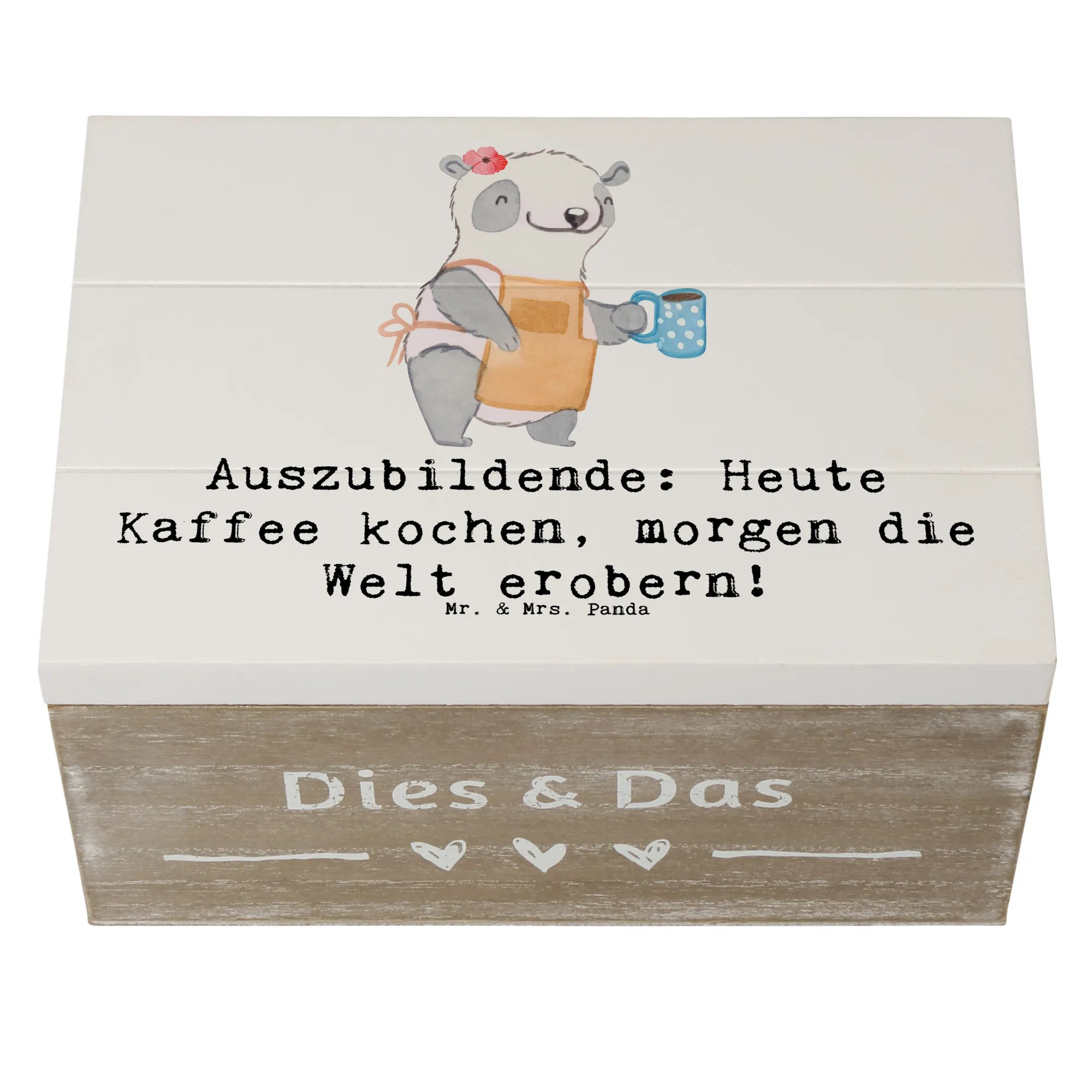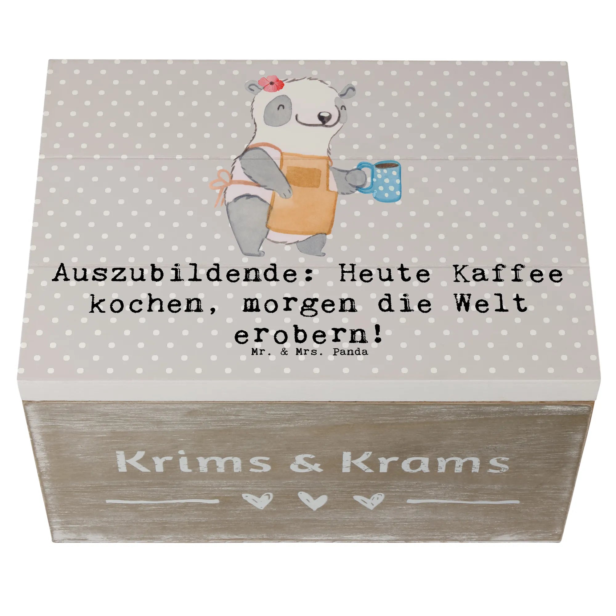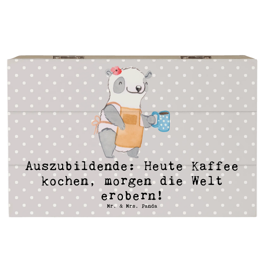 Wooden chest Auszubildende: Heute Kaffee kochen, morgen die Welt erobern! - 19 x 12 cm - Pastel Gray