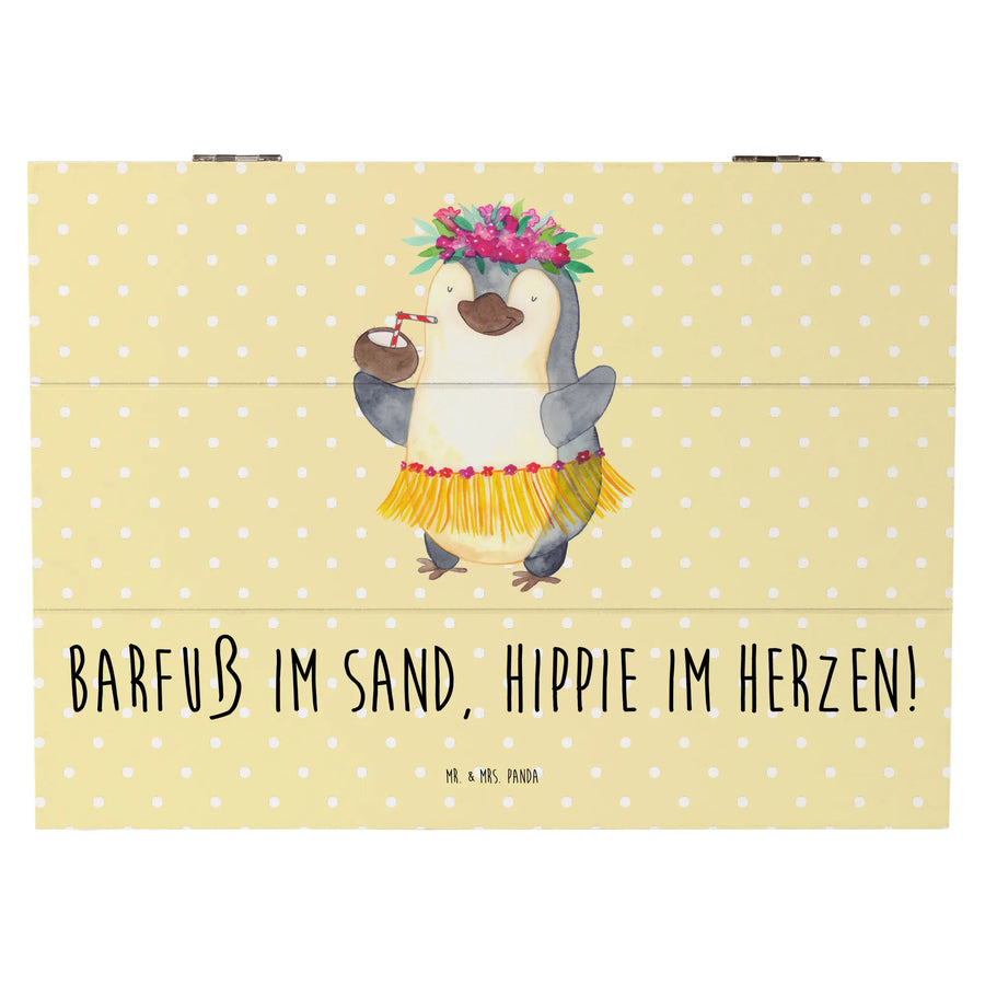 Wooden chest Barfuß im Sand, Hippie im Herzen! - 25 x 18 cm - Yellow Pastel