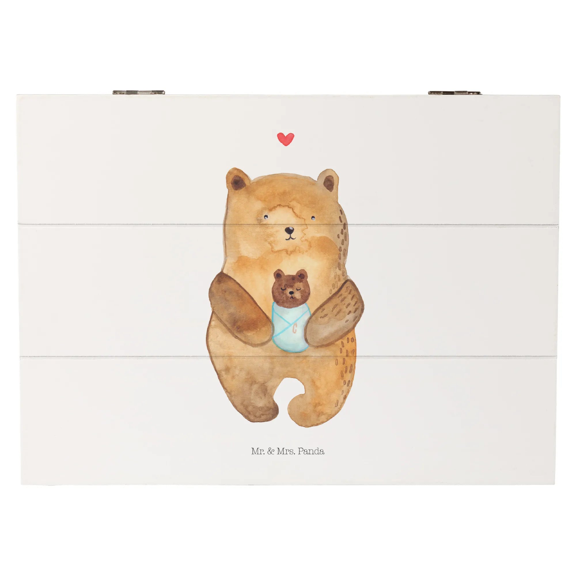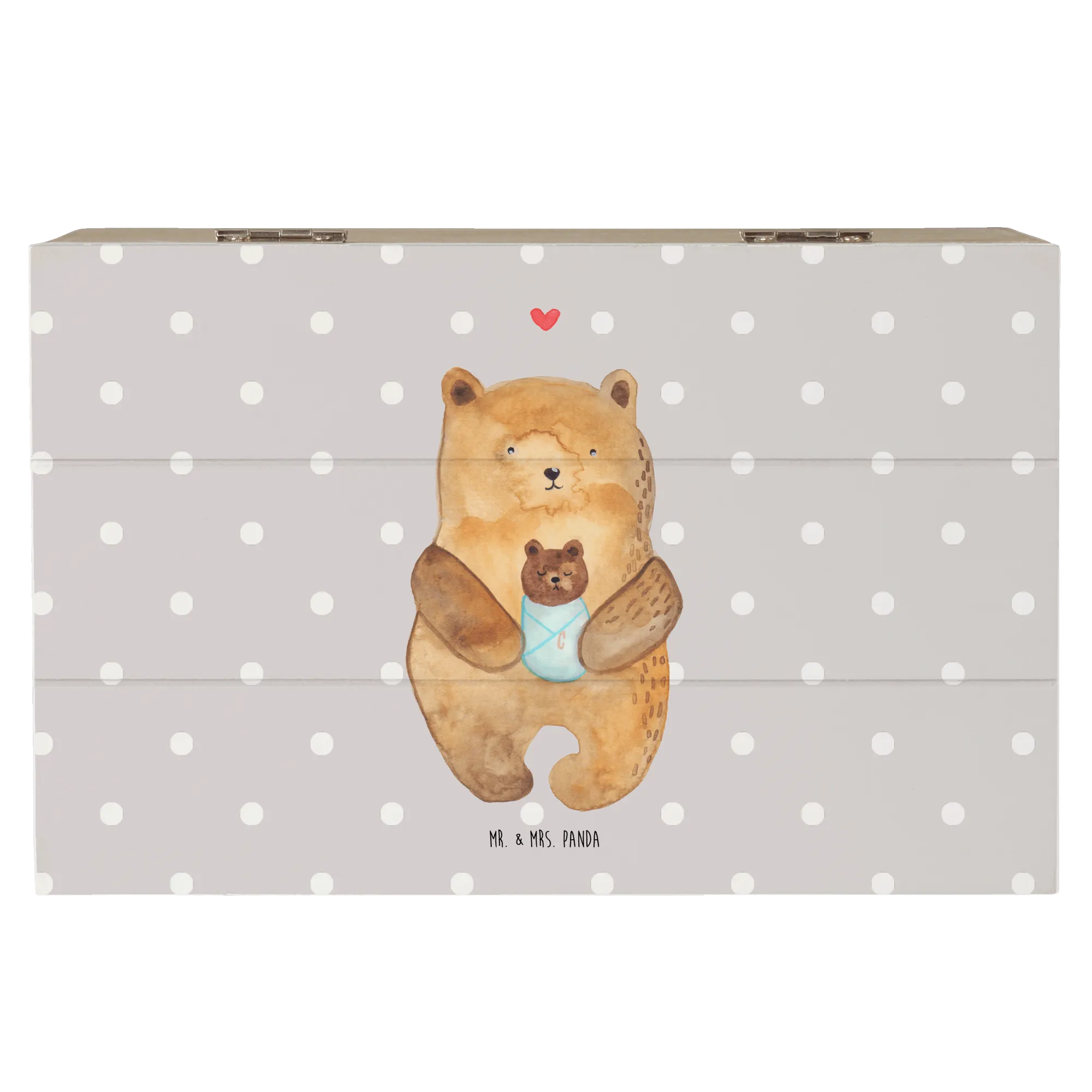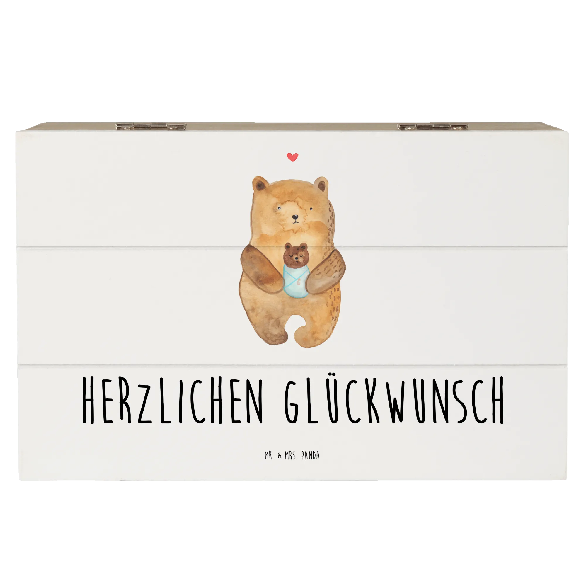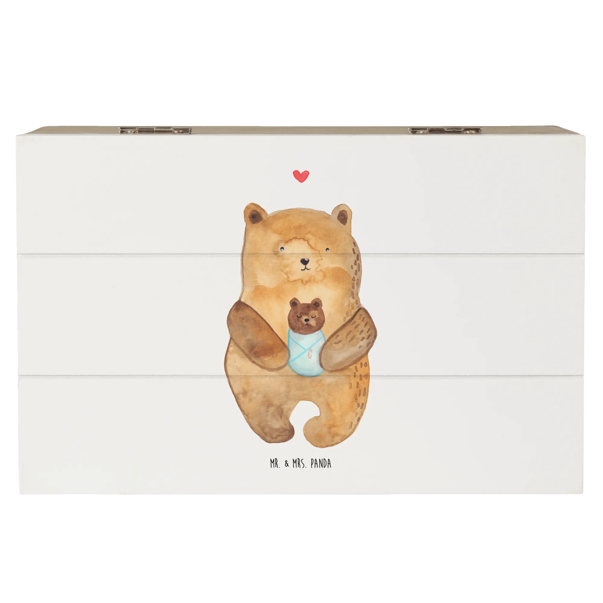 Introducing the delightful Wooden Chest featuring the charming motif of a Bear with Baby from the Mr. & Mrs. Panda Bear collection! This beautiful treasure chest is the perfect gift for a variety of occasions, such as christenings, birthdays, and to celebrate new parents. With its adorable design, this memory box is not only functional but also adds a decorative touch to any nursery or child's room.