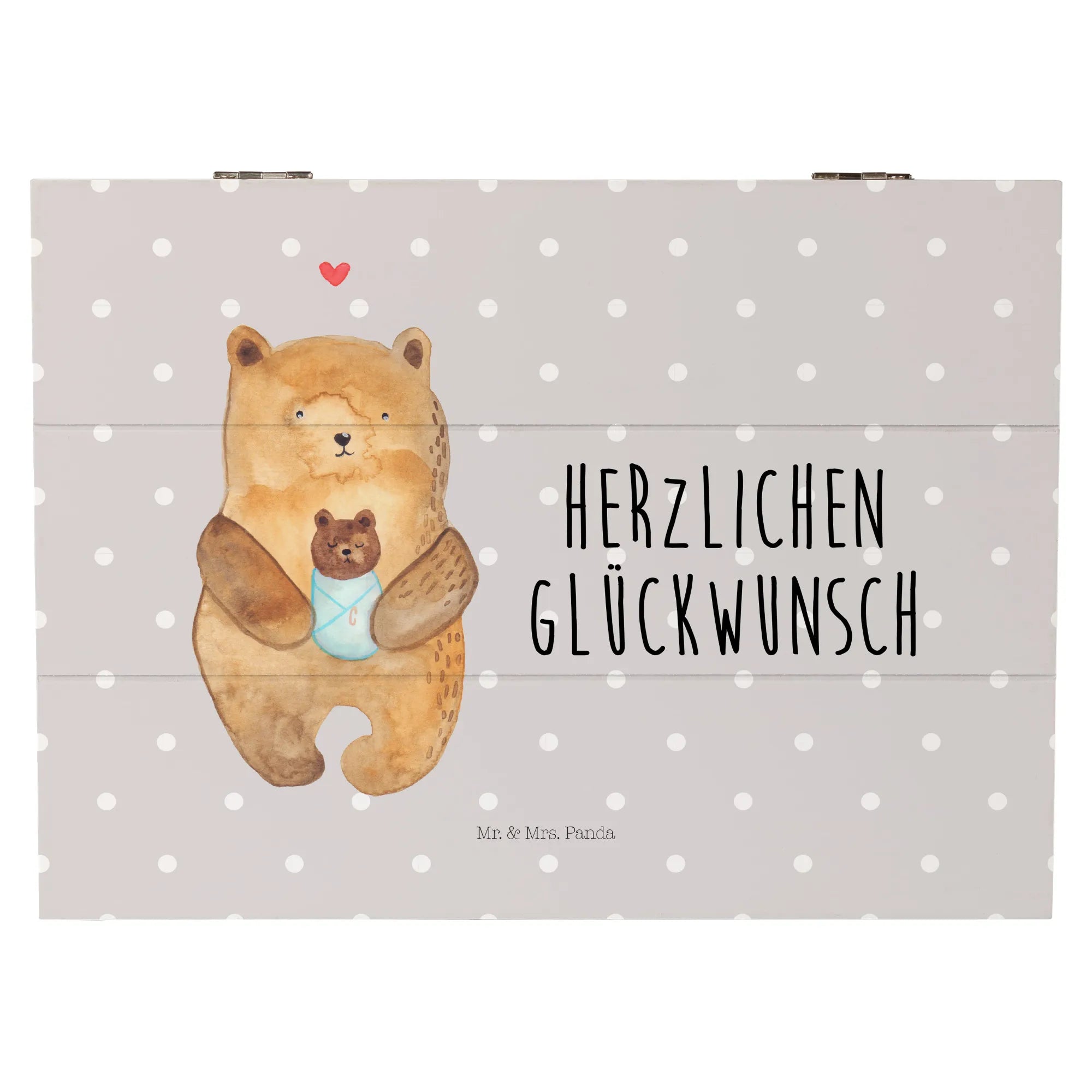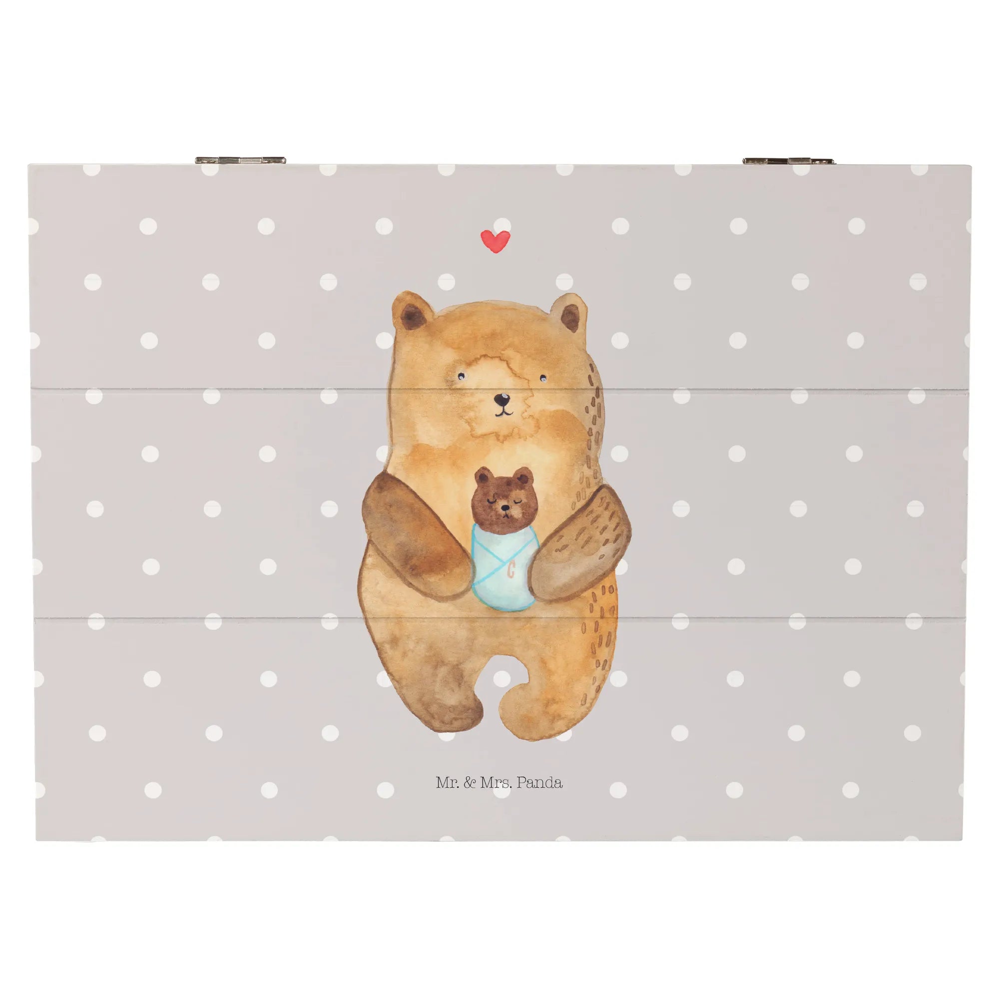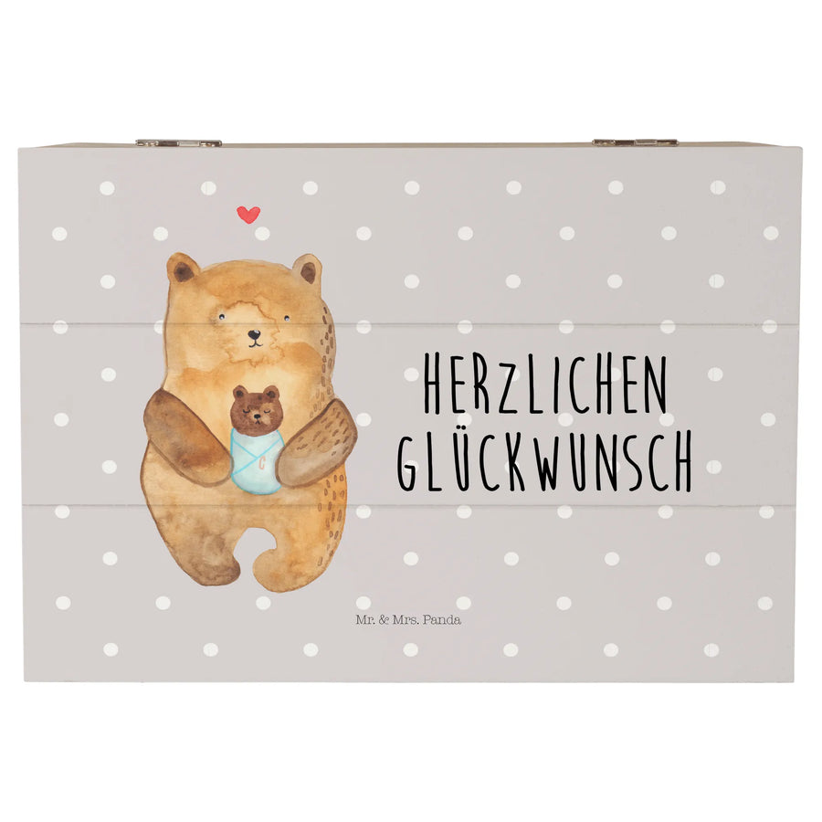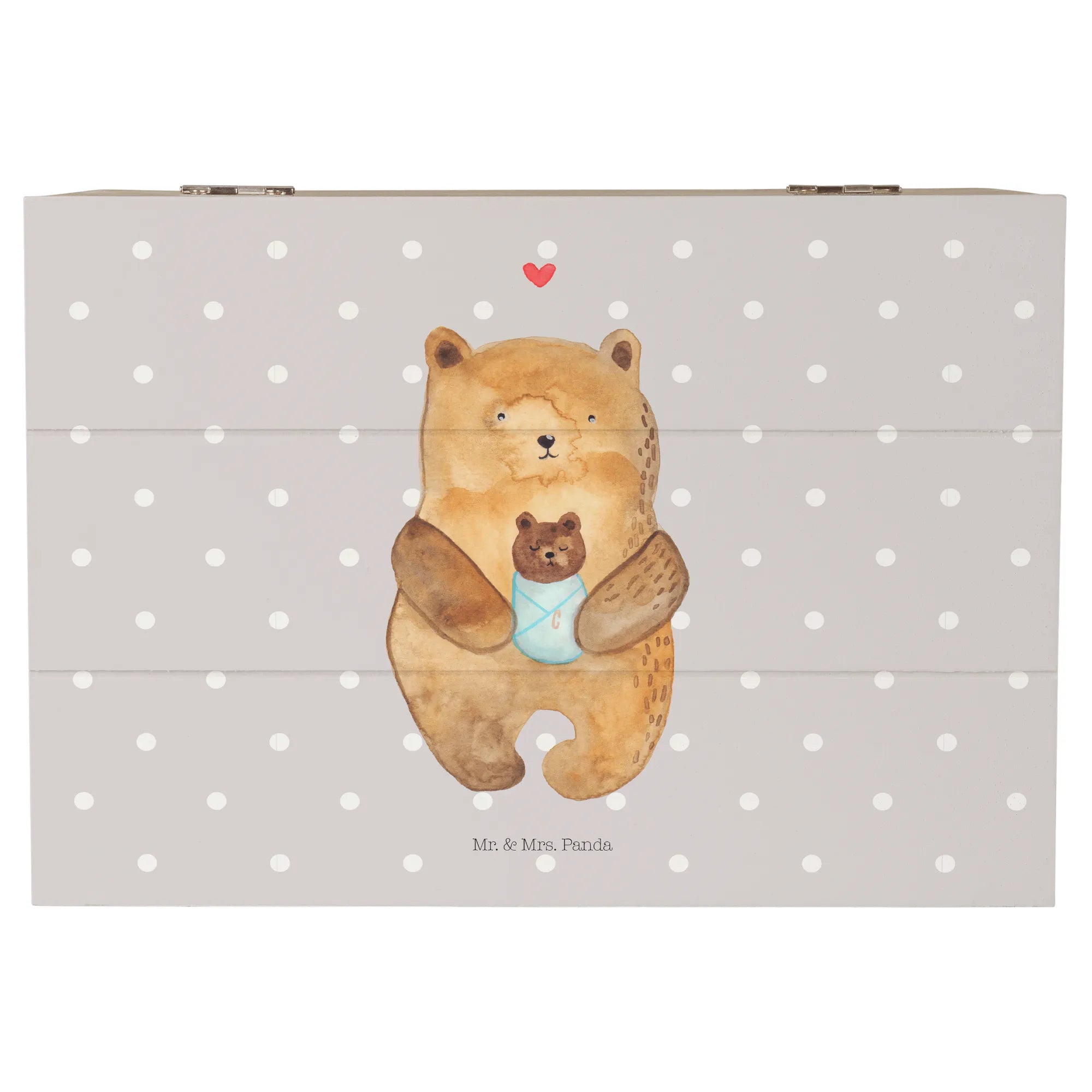Introducing the delightful Wooden Chest featuring the charming motif of a Bear with Baby from the Mr. & Mrs. Panda Bear collection! This beautiful treasure chest is the perfect gift for a variety of occasions, such as christenings, birthdays, and to celebrate new parents. With its adorable design, this memory box is not only functional but also adds a decorative touch to any nursery or child's room.