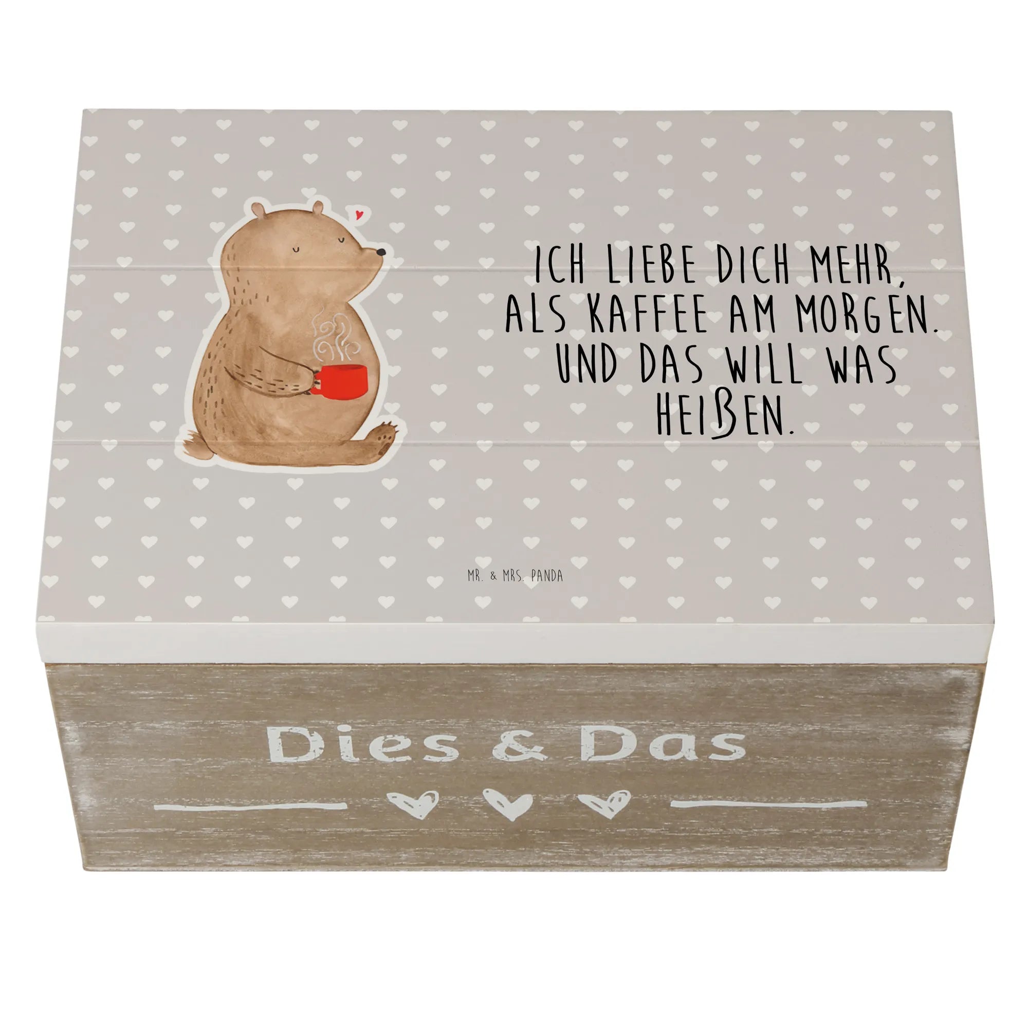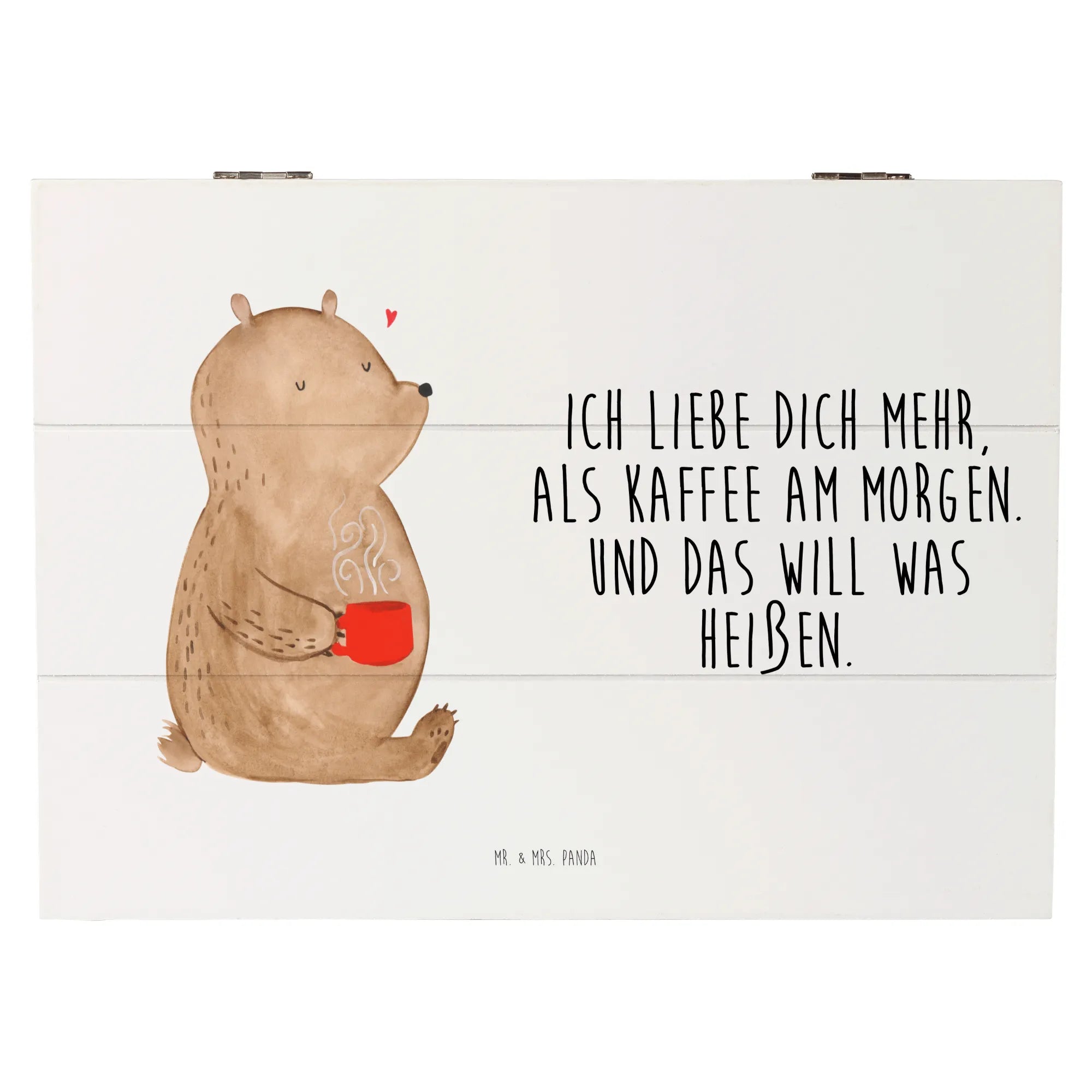 Wooden chest bear morning coffee - 22 x 15 cm - White