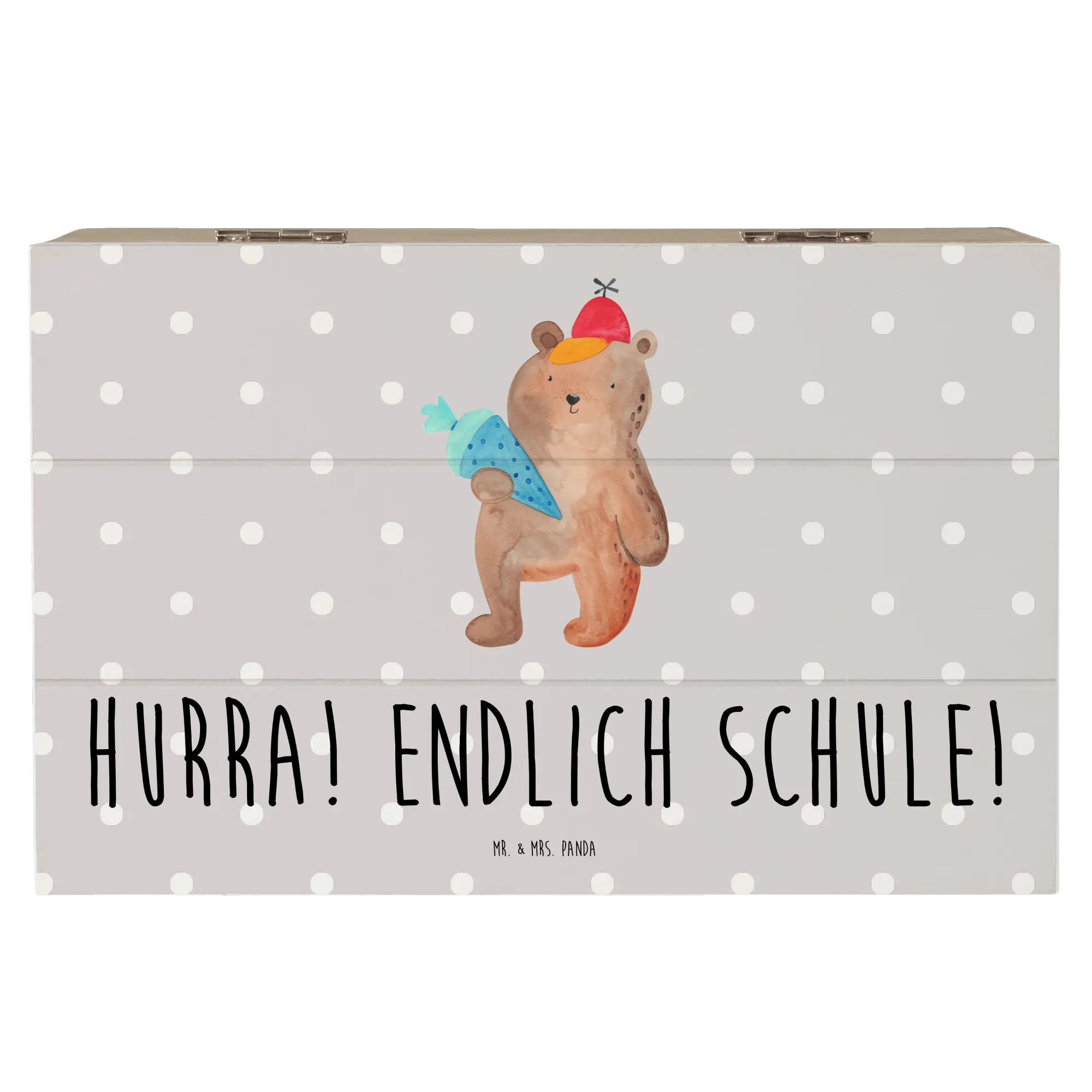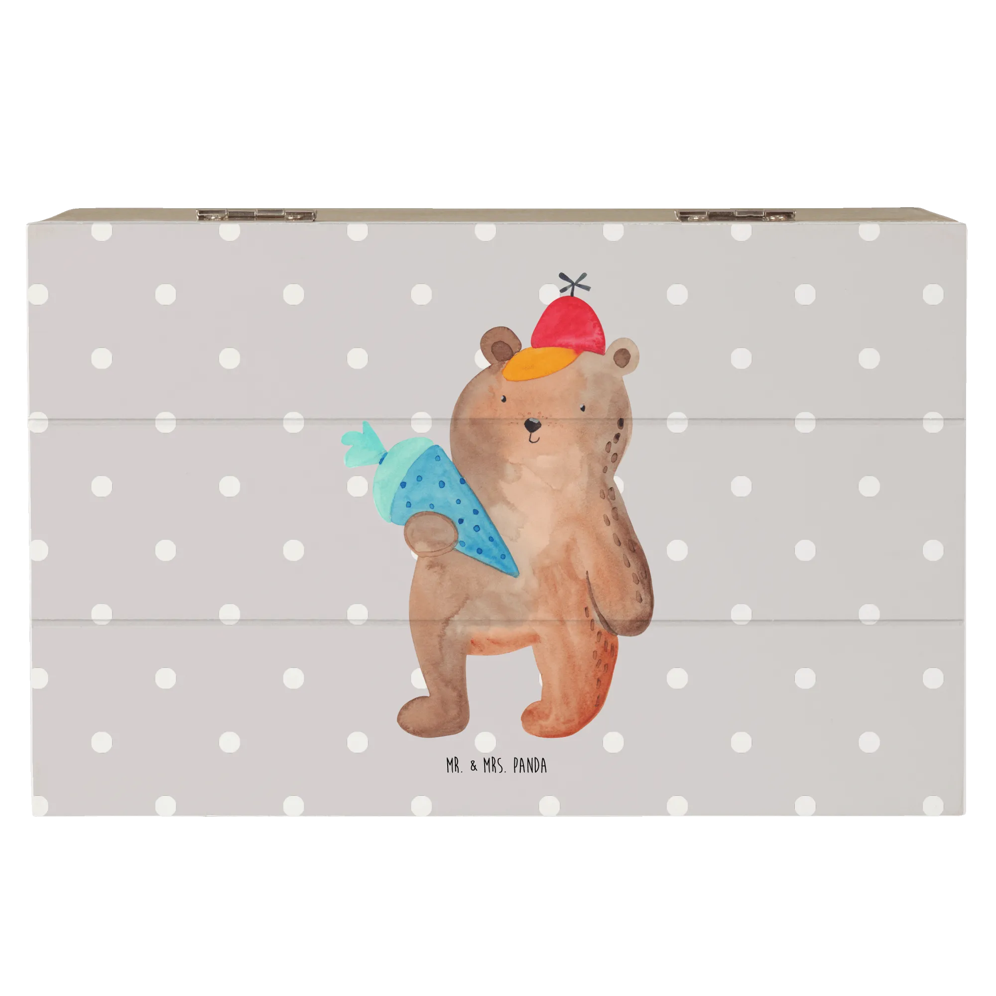 Wooden chest bear School cone - 22 x 15 cm - with a saying - Pastel Gray