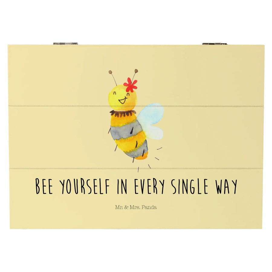 Wooden chest bee flower - 25 x 18 cm - with a saying - Pastel Yellow