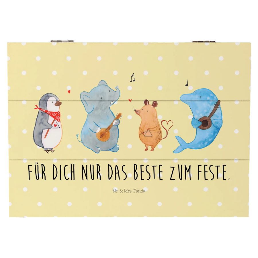 Designed with love, this beautiful chest boasts an enchanting illustration featuring a lively penguin, playful mouse, cheerful dolphin, and an adorable elephant—all celebrating the magic of music in their colorful outfits. This motif brings a smile to everyone who sees it, making it an ideal gift for all music lovers, parents, and animal enthusiasts. It’s especially perfect for celebrations such as birthdays, graduations, or any special occasion that deserves to be commemorated with a thoughtful gesture.