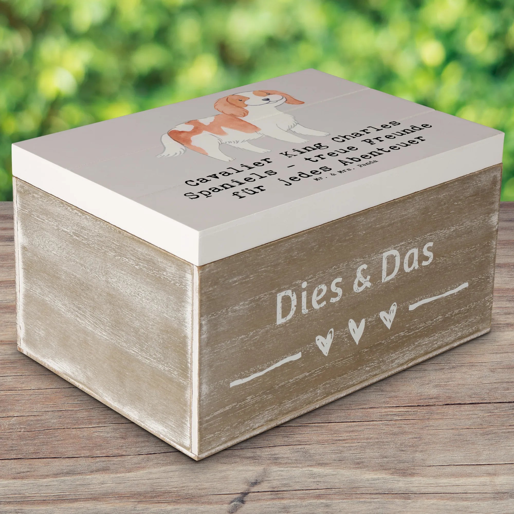 Wooden chest Cavalier King Charles Spaniels - treue Freunde für jedes Abenteuer - 22 x 15 cm - Grey Pastel