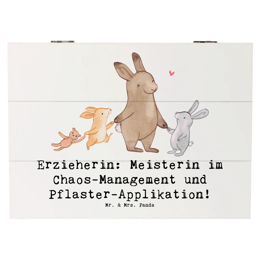 Wooden chest Erzieherin: Meisterin im Chaos-Management und Pflaster-Applikation! - 25 x 18 cm - White