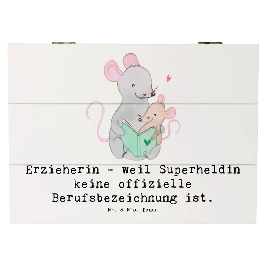 Wooden chest Erzieherin - weil Superheldin keine offizielle Berufsbezeichnung ist. - 25 x 18 cm - White