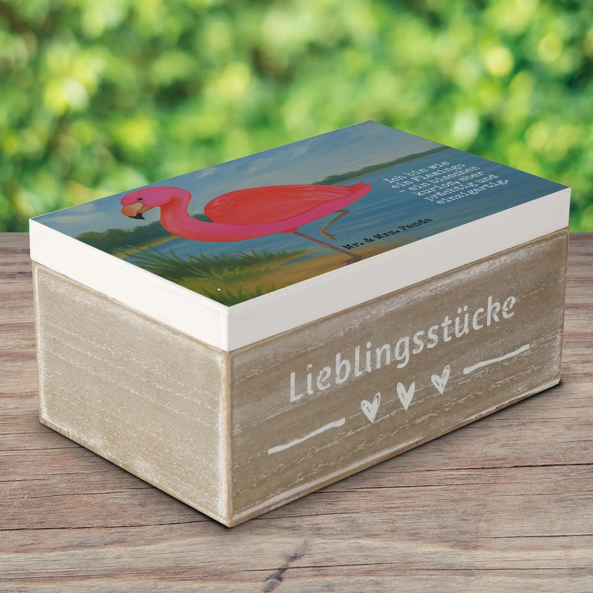 Wooden chest flamingo Classic Design - 22 x 15 cm - with a saying