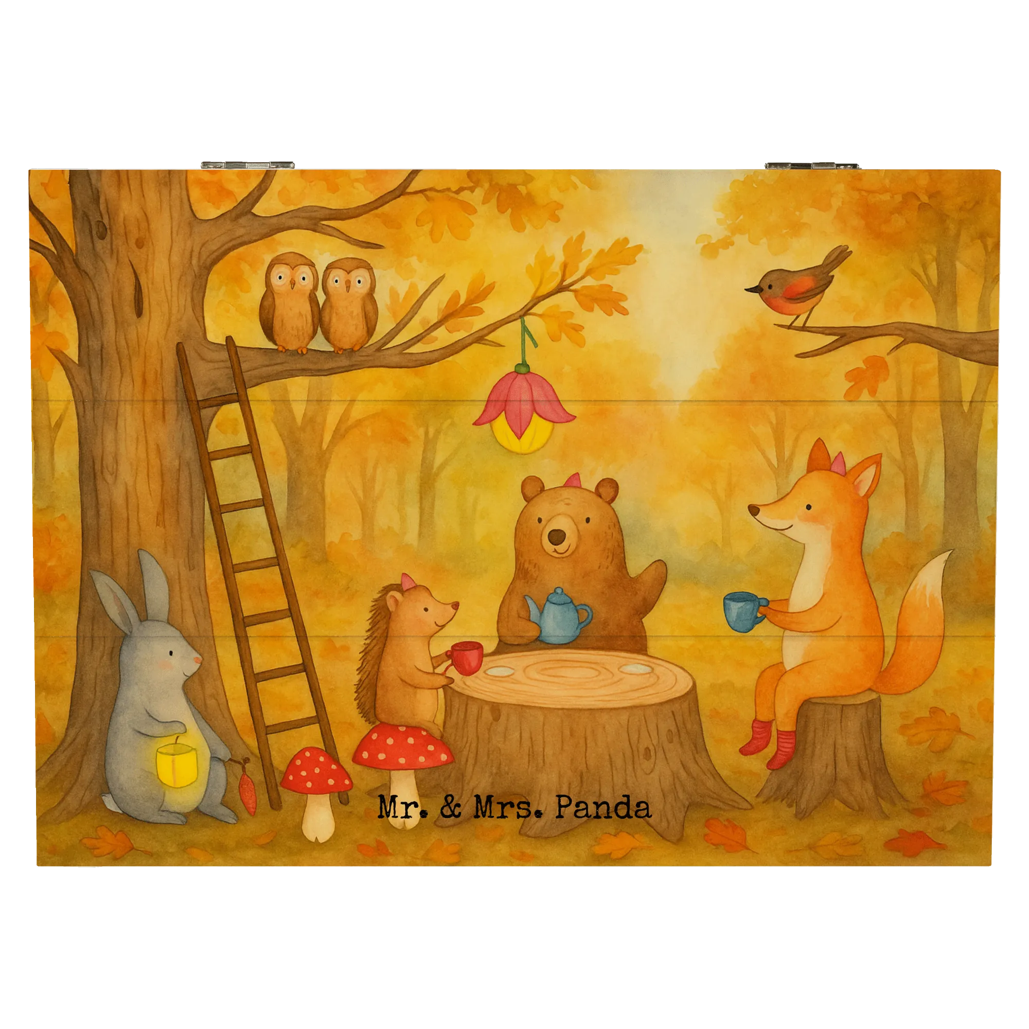 Wooden chest forest animals picnic Design - 22 x 15 cm - with a saying