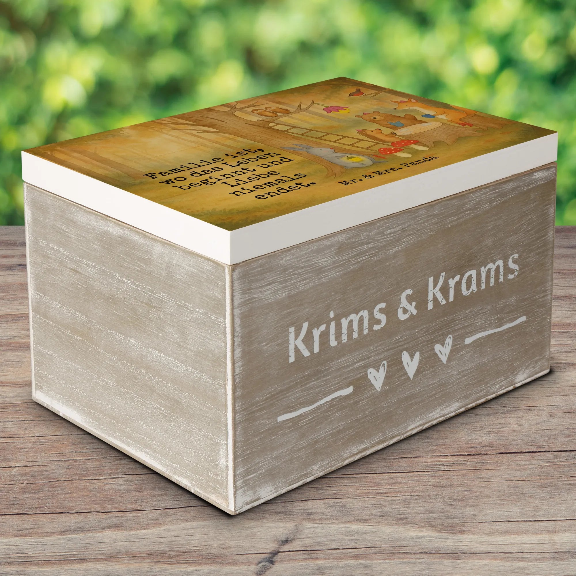 Imagine a beautiful wooden chest crafted by Mr. & Mrs. Panda, where every detail embraces the warmth of your cherished memories. This sturdy chest measures 180 mm x 250 mm x 150 mm, making it a perfect spot to store your most treasured items. Whether it's for keepsakes from special occasions, childhood mementos, or as a stylish way to store family photos, this chest is sure to bring joy and inspiration to your home. Made of robust wood fiber, it provides a sustainable and reusable option for gifting or simply organizing your beloved things. With decorative motifs and thoughtful sayings, not only does it serve a functional purpose, but it also adds a delightful touch to any room. Thanks to its unique hinge construction, you can easily open and close it, keeping what's inside secure yet accessible. Remember, this beautiful gem is available in multiple sizes, catering to all your storage needs. A quick wipe with a damp cloth will keep it looking fresh for years to come.